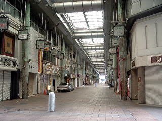 戸畑---執念の洞海湾 普通列車で東へ、駅を3つやり過ごして戸畑で下車。 今回の旅の目的の一つが、小学生のときに見て強く印象に残っている若戸大橋を再び見るという、がらにもなくおセンチなメンタルのジャーニーたい。 戸畑は旧5市の真ん中に位置し、八幡と同じく新日鉄の企業城下町。数年前に書店営業で来たと記憶するが、ガラーンとさびれた駅前風景のほかは記憶になし。 今回来てみたら、南口駅前が再開発されて立派になっている。でも若戸大橋へは北口から出る。昔はこっちが玄関口だったんだろうが、今はすっかり裏口だ。 北出口を出ると海までまっすぐに道が伸び、正面に真っ赤な大橋が見えている。400mほど歩くと橋のたもとの渡し場に出る。 ![]() (左)駅を出ると間近に迫る赤い橋 (右)渡船場。対岸は若松 若戸大橋は洞海湾の入口にかかっており、戸畑と若松を結ぶ。洞海湾の幅はここでは400mたらずで、大橋の長さは680.3m。 若戸大橋は俺が生まれた1962年に完成した。ちゅーことは俺と同い年だ。日本の独自技術による初めての大きな吊橋で、これがのちに関門大橋→瀬戸大橋→明石海峡大橋へと進化してギネスることになる。 つまり俺が生まれてからの40年あまりで、日本の吊橋技術はものすごいところまで進歩した。その間、俺は何をやっとったのかということになるわけだが。あはははは〜。 大橋の下を、緑に彩色された渡船が行ったり来たりしている。それに乗って若松に渡りたい衝動に駆られたが、時間的なことを考えて断念した。ま、次回のお楽しみにおいとこう。 渡船場から大橋の付け根の高架道路に沿って東の市街地へ。 JR線路を越える手前にお地蔵さんがあり、数人のおばちゃんらが何かやっている。ふと見ると、地蔵が手に何かを持っている。すげ笠のような持ち方だが妙に小さい・・・げっ、これ胎児だよ! 思わずそこにいたおばちゃんに、「これ変わってますね」と声をかけると、 「これは水子地蔵たい」 と言う。まあそうだろうが、しかしそれにしても妙な持ち方だ。「この水子が目に入らぬか!」じゃないんだから。 ![]() (左)お顔はやけに美形 (右)せめて胸に抱いてやるとか・・・ 写真左のおばちゃんが、 「これ持って行きんしゃい。どうせお接待で配るもんじゃからよかよ。これも何かの縁たい」 と言って、彼女らがそこで小分けしていたスーパーの袋を一つくれた。中にはバナナとリンゴとパンケーキみたいなのがいくつか入っている。 ありがたく頂戴し、さっそくバナナを食いながら歩く。昼食代が浮いちゃった。 さて、せっかくだからここでも銭湯つなぎ歩きで町を見よう。iタウンページによると、戸畑にはけっこう銭湯があるようだが。 まずは市街地と工業地帯の境に近いあたりを東へ2kmほど歩く。こういうところはたいてい道が広く、古い住宅の合間に空き地も多かったりする。街の大雑把な感じがちょっとアメリカンだ。 どこか大陸的なまちなみ ![]() (左)駅北口に近い旭湯 (右)駅の北東1kmにある朝日湯、ちょっとかわってる ![]() (左)朝日湯から300mほど東にある中将湯、渋い (右)工大前駅に近い明松湯、民家的かわいらしさがナイス 明松湯の周辺は、昔ながらの商店街になっている。ここで南に向かうと国道199号線に出て、正面に九州工大のいかめしい門がある。北九州工業地帯を支えた大学なのだろう。 工大の西壁に沿ってしばらく南下したのち、西に向きを変えて戸畑駅方面に戻る。1kmほど行くと戸畑区役所がある。ありし日の栄華を感じさせる、レンガ造りのしゃれたレトロ建築だ。 ![]() (左)九州工大、緑が濃くて校舎は見えず (右)戸畑区役所 さらに駅のほうへ大通りを歩いてゆくと、前方から若者の大きな声が聞こえてくる。しかも大勢で何かを歌っている。何事かと思って近寄ると、歩道のあちらこちらに数人ずつの若者たちが固まり、ふんどし一丁で米俵に乗って何かを歌っている。 こ、これは・・・もしかして本州では20年前に絶滅したと言われる、いわゆるひとつの「バンカラな校風」というやつか・・・!? ![]() (左)「忘身」っていうより、目立ちたいだけだろが (右)10m間隔で陣取っている 応援歌みたいな勇ましいのを歌っているかと思えば、別のグループは「きみと出〜会ぁった奇跡が〜♪」なんてやっている。赤フンでスピッツ・・・。 そのへんで見ていたおばさんに「あれは何ですか」と聞くと、 「工大の行事みたいで、毎年やってますけど、何なんでしょうね。町の祭りとは関係ありません」 とのことだった。 よく観察すると、町の人たちの視線がけっこう冷ややかだ。学生たちのズレ切った青春の熱い姿を、町じゅうの人たちが無視している。 ふと、北九州工業地帯の衰退、という言葉が頭をよぎった。 工大から駅までの間で、銭湯もう2軒。 ![]() (左)工大と区役所の中間にある玉の湯 (右)区役所と駅の中間にある昭和湯、タイルが見事 さてと。けっこう歩き疲れて駅に戻ったが、なんか今朝の河頭山からの眺めにイマイチ満足できな