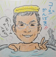 関西各地に残る昔ながらの銭湯を勝手に応援すべく、7年前から「幸福を呼ぶラッキー銭湯ポストカード」をコツコツと描いてきた漫画家・ラッキー植松と、それをプロデュースしてきた松本康治。