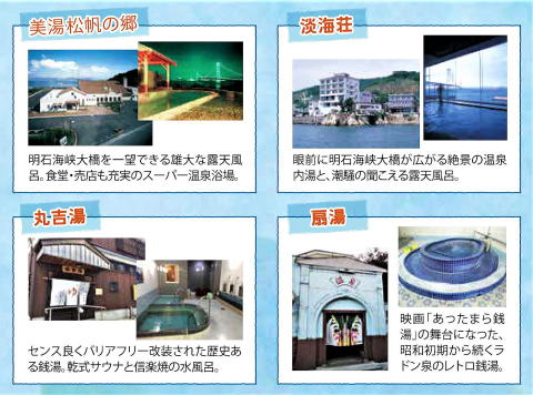 【日時】2018年4月21日(土)12:30~14:30 (岩屋港12:00発の無料送迎バスが便利です) 【場所】美湯松帆の郷 絶景バーベキューテラスにて ![]() ![]() 【参加資格】「淡路岩屋の湯名人」の称号を得た方(ご家族OK) 【参加費】食事代(焼肉&海鮮バーベキュー、3000円、飲み物別) 【持ち物】淡路岩屋の湯名人認定証または湯名人タオル ※ラリー4湯を2周した「大湯名人」、3周した「超湯名人」には記念品贈呈 ※いいものが当たるじゃんけん大会もあるよ! 【お申し込み・お問い合わせ】 furoikoka@yahoo.co.jp 上記アドレスへお名前とお電話番号をお知らせください。 【お申し込み期限】4月15日まで 【主催】淡路岩屋の湯名人有志、島風呂隊 |