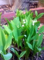 女湯脱衣場の庭にスズランの花が咲きました。 |