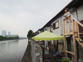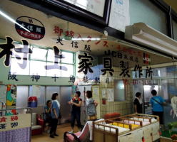 ![]() ![]() ![]() ![]() ![]() (左)カフェから眺める下町風景 (中左)鴻池組旧本店 (中)ジョーズが飛ぶ四貫島商店街 (中右)風呂屋の玄関タイル (右)ちょっと珍しい番台ブース
