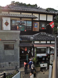 ![]() (左)崖っぷちの古民家カフェ (中)歴史ある洋風建築の大黒湯 (右)平野のくねくね坂道 |