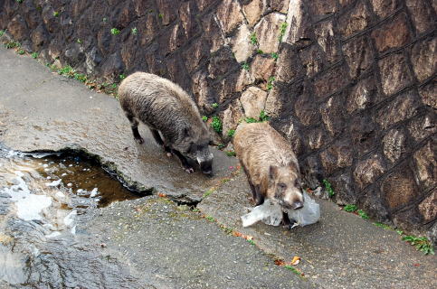 もはは。もう我慢でけんのよ。だから徹夜までせんならんかったわけね。 でも大丈夫か、俺。 まあ生きて帰れたら久しぶりに例のクイズだからね。お楽しみに〜。 2009.1.13(火) 溜 やあ。まっちゃんです。やること多し。 旅行にも行かず山にも登らずに、1日の大半をパソコン前で過ごす日々。ちょっとウンザリしてきたなあ。 銭湯だけが喜びだ。今日もふじ温泉でポカポカぬくぬく。真冬の水風呂、最高ね。 本日の写真:石動物シリーズ@ 目がイッてる象2009.1.12(月) 冷 やあ。まっちゃんです。 今宵はまたカキーンと冷えとるなぁ。 ところで今月の写真対決、みんな撮ってるか〜い? それについての記述がずいぶん日誌の下のほうに埋もれてしまったので、案内ページを作って最新の日誌にリンクしておいた。 ふふふ〜楽しみねぇ。 2009.1.11(日) 戎 やあ。まっちゃんです。 大阪での取材前に、20年ぶりくらいで今宮戎をぶらっと覗いてきた。 参道風景今日はもう空いてるのかなと思ったら、なんのまだまだ大賑わい。狭い境内は人だらけだしうるさいのでサッと通り抜けたが、ここにはカメラを持ってたらいちおう撮らないわけにいかないお約束の被写体が並んでいる。 仕方がないので、当日誌のオッサン読者のみなさまへのおみやげに、不十分ながらも俺なりに任務を遂行してまいりましたのでどうぞ。 外人部隊 ![]() このお二人が最も福娘が似合っていたのではなかったかと オッサンのみなさまは今日の写真に投票しないようお願いします。 そしておもむろに「ふしぎ山」のびんびんにとんがった山々、大嶽、五剣山、不動岩、行縢山、蔵王岳、鷹ノ子岳、竹山に地図を豪快に挿入しておいた。こいつが俺のやり方。 2009.1.10(土) 中華 やあ。まっちゃんです。 今日は寒くてひもじいのか、天井川にイノシシが6頭も下りてきていた。いつもは2〜3頭なので、こんなに多いのを見るのは初めてかも。 まりもによると、今度給食のおかずにイノシシ肉が出るそうだ。 ![]() (左)岡本名物シシのうろつき (右)うしろのやつのキバがやばい 寒い日はこもりがちなガキどもを3時間ほど引っ張り出し、みぞれの降る中、初詣がわりに花隈の関帝廟へ行ってきた。 関帝廟は三国志に出てくる関羽を神格化した中国の民間信仰だ。関羽はそろばんを発明したといわれていることから、商売の神様として華僑・華人たちに篤く敬われている。 ![]() 奥のオレンジ色が関羽像神戸には華僑(中国籍)が1万人以上いるらしいが、最近は若い人もずいぶん見かけるから、もっと増えているのかもしれない。俺がたまに行く何軒かの飲み屋でも必ず中国人の女の子が働いている。帰化した華人やその末裔(華裔)も含めたらどれくらいになるのだろう。 神戸の華僑は幕末の神戸開港時に欧米との貿易の仲立ちとして重要な役割を果たし、そのまま深く根をおろしてきた。南京町(中華街)の祭りである春節祭は現在、神戸市の無形文化財ともなっている。 中華ついでに、このあと元町で中華料理。丘は例によってワンタンメン、まりもは点心いろいろでご満悦だった。 水晶餃子、蝦仁腸粉、ももまんじゅう写真を整理してたら、去年の9月に撮った大阪の大手湯の写真が出てきたので「名銭湯」にあげといた。 2009.1.9(金) 大木 やあ。まっちゃんです。 引き続きデスクワーク。それでなくてもこの季節はやること多いんだが、いつになったら旅立てるのか。 腹立ちまぎれに、熊山遺跡に地図挿入。 まりもがケータイ写真を送ってきた。 写真対決の写真送ります。私もやりたいねん と書いてある。しかし、こないだの新ルールはまだ見ていないようだ。もう常時無差別バトルじゃなくなったんだよ。 でもせっかくなので、「本日の写真」として使わせていただきます。 まりも作 「都会の大木」この木を見て、小学校5年生の少女は何を思ったのか。それは俺にもわからない。 2009.1.8(木) 亀な旅 やあ。まっちゃんです。 こもって書き仕事をするが、なにかと雑務が多くてそのつど中断し、あまり進まず。 気分転換に銭湯へ行ったら、スチームサウナで腕立てしすぎてフニャフニャになった。 といいつつ、仕事の息抜きにちょっとだけ国会中継を見た。 アソーのバラマキ給付金に関連して、民主党の逢坂議員による市町村行政の苦境についての切々たる訴えを聞いて、先日の真壁町のバスの件についての認識を少し改めることにした。 役場の人に「どうしてくれますか」と詰問するのはやめる。バス廃止は苦しい財政状況に鑑みての、おそらくは苦渋の選択だったことだろう。桜川市のホームページを見ると、住民を対象にした乗り合いタクシーの運営にも努力しておられるようだ。 ただし、誰もが気軽に利用できる路線バスがなくなることが地域崩壊のシンボルであることに変わりはない。 山奥や離島ではこういった事情はさらに厳しいに違いない。 たとえば一昨年に長崎県の平戸へ行ったとき、バスターミナルから平戸島を縦断して宮之浦まで行く朝一番のバスに2日続け