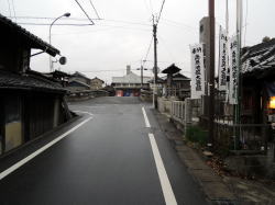 一宮から木曽川方面へ盲腸のようにのびる名鉄尾西線。終点の玉ノ井駅を出て左へ行くと、すぐに右手に廃材と煙突が見えてくる。まぎれもなく銭湯の裏口だ。 路地に面した正面へ回ると、なんとも郷愁感にあふれた古民家ふうの玄関が現れる。門と玄関の間はヒサシが張り出し、それを松の木が突き抜けているさまがよろしい。ヒサシを支える柱が水色に塗られているのもかわいらしい。なんとなく、ほっとするねぇ。 男女の暖簾の間にはタイル絵があるが、営業案内やローン広告に隠れているのが残念だ。 サッシ戸を開けて中に入ると、タタキにベニヤ補修の番台があって、おやじさんがいる。愛知名物の金属製スキマ下駄箱もあり。 脱衣所の天井や床などは新建材で補修されているが、男女壁あたりを中心に、くたびれムードが漂う。とくに冷蔵庫は濃い。脱衣箱は木製で、色つきの透明フタがはまっている。 台上に置かれた小さな飼育箱の中で、夜店でもらった金魚が大きく育っている。それをおやじは流し台に持って行って、蛇口の水でそのまま水を換えた。「井戸水だから元気なんだよ」。 ここでウッと声が出た。浴室入口の上部壁に、端から端まで男女ぶち抜きの長大なモザイクタイル画がある。 松島だ。なんで濃尾平野で松島なのかはわからんが、こいつはすばらしい。 浴室へ進むと、中央に楕円形の深浅主浴槽がある。 びっしり貼り込まれた1cm角の豆タイルが磨耗して色が抜け、白々と不思議な光沢を放っている。湯舟の周囲を取り囲むように床面にも青い1cm角タイルが貼られており、その他の部分は六角形の白タイルで埋め尽くされている。 やや熱めの湯は、肌触りがやわらかい。金魚がいきいきと育つわけだ。玉の井という地名はこの水質から来ているのかな。 主浴槽の端には真鍮の給水カランがあるが、もげたレバーの代わりにスパナが取り付けられているのがシュールでよい。 奥にも2槽あり。こちらは濃厚な緑白色の薬湯で、片方はデンキ風呂になっている。この2槽のフチに使われている細かいタイルも渋い。 壁は白タイルで装飾はない。 カランまわりには薄ピンクの細かい豆タイルびっしり。カランは自動調温で一人1本ずつ。だが自動調温といってもスーパー銭湯にあるようなのではもちろんなくて、古典的銭湯用品で、しかもこれまたレバーがもげて、今度は糸巻きの芯みたいな木の棒で代用してあったりするのがおもしろい。 おやじさんによると、建物は昭和のはじめか大正の終わり頃のものらしい。昭和14年に先代がここを購入したが、「そのときワシはハラに入ってた」。 昭和34年の伊勢湾台風のときに屋根が吹っ飛んで壁が落ち、奥にあった富士山の絵もつぶれたので造りなおしたという。 玉ノ井は繊維の町だった。朝鮮戦争の前後は「がちゃまん景気」と呼ばれ、夜中の12時ごろまで工場が動いていた。そのため銭湯も遅くまで営業したそうだ。だが伊勢湾台風のころからダメになった。 もと繊維・染色関連の工場のうち、いくつかはスーパー銭湯になったという。敷地が広く、水周り設備ができているので転用しやすいらしい。 おやじさんは織物にかなり詳しい。話を聞いていると、景気の良かった頃の繊維工場の様子が目に浮かぶようだった。 それぞれの町に、それぞれの銭湯の歴史じゃのぉ。 (2008.7.5) |