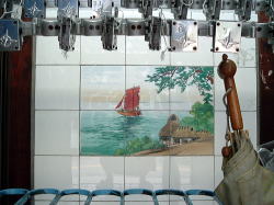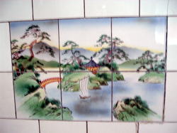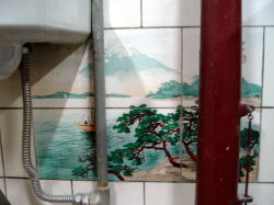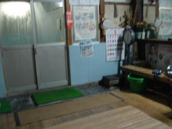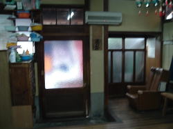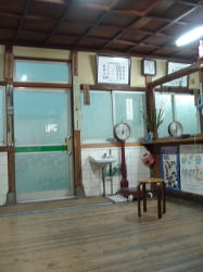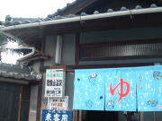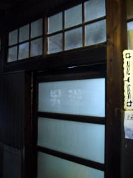 JR播但線で姫路から一つめの京口駅を東へすぐ、幹線道路に面している。小さくて古いスタイルの建物だが、塗り直されたようで小奇麗な外観だ。 ![]() (左)玄関上の屋号と温泉マークは木彫り (右)コンパクトな全景、駐車場3台分あり 中も改装済かな? と思いつつ玄関を覗く。下駄箱は新しく、入口の戸も茶色サッシになっている。が、正面に帆掛け舟のタイル絵があるじゃないの。 かわいい逸品ちょっと胸ときめかせながら戸を開けると、番台に上品そうなおかみさんが座って、なにやらパソコンをさわっておられる。 脱衣所は・・・おぉ、これはなかなかのイニシエ空間じゃないの。格天井の中央に3枚プロペラ、でも動いておらずクーラーが効いている。男女仕切り壁がなんとも渋みの効いた木製。ロッカーは昔ながらの木製だが、番号はアラビア数字。 便所を尋ねると、男便所は外らしいが鍵が見当たらず、衝立で隠しつつ女湯脱衣所の便所を借りることになった。ははは、わしゃ何にも見ておらんし触ってもおらんし嗅いでもおらん。 浴室はこれまたクラシック。細かいタイル使いの浴室で、ひび割れや剥げたタイル部分には豪快に白セメン修理が施されている。 湯舟は中央にポンと深浅のみで、周囲に低い座り段あり。おぅ、深にはヘルスパー発見! 久々じゃのう。湯舟のヘリには御影石が乗っているが赤銅色に色素沈着、地下水に鉄分が多いのかな? ただ、湯がぬるめだったのが山歩き後の俺としては残念。41度ないかも。 カランは手前に8つ、うち3つはシャワーつき。出入り口横に水鉢あり。 珍しいのは、奥壁にある絵本の挿絵みたいな壁画。森、家、海がじか描きされているが、ペンキ絵なのかな? 上がりは飲み物販売あり。夕方6時すぎ、他客は一人、帰り際にまた一人という感じだった。 (2005.8.4) |