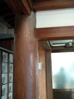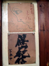 きましたねぇ・・・。いかがですこの貫禄の日本建築。 山陽電車で垂水駅の西隣「霞ヶ丘」駅から山側へ歩き、最初の信号を右折したところにある。駐車スペースも4台あり。 玄関周りの造りは天水湯に似ている。が、こちらはその他の部分の細部に渡るまで、和の装いが貫徹されている。 あっさり暖簾をくぐるのがもったいない味わい暖簾をくぐると正面に切り株を使ったオブジェあり。下駄箱の上がりがまちも全部木でできており、脱衣室へはさらに3段の木の階段を登っていくのが珍しい。お寺みたい。 下足室正面上部に、どなたかのお写真が・・・重厚な木の戸を開けると、これまたどっしりと黒光りする木の番台と、広い脱衣場。高〜い格天井に扇風機が回り、しっくい壁に木のロッカー、その上部にはさらに明り取りの格子窓に擦りガラスと、情緒満点マニア感涙の充実空間だ。 そして開け放たれた履き出しの向こうに庭があり、縁側までついている。この庭、普通の銭湯の庭の倍はあるぞ。いやあ、よろしなぁ〜。 普通は男女の仕切り壁の上にあることが多い神棚が、ここではロッカーの上に設置されており、しかもよく手入れされている。サカキの葉も新しくてつやつや。 トイレの窓まで和の味わい。レトロ保存度では今のところ神戸最高だな。 ただし気になるのは、ある人物のポスターや新聞切り抜きなどがやたらベタベタと貼ってあること。玄関先の暖簾の両脇にもデカデカと看板が出ているし、下足室の正面上部には額縁入りの近影が飾られている(上の写真)。 どうやら地元の有力者のようで、政治活動などもなさっておられるらしいが、もしかしてこの銭湯のオーナーでもあらせられるのかもしれない。そういや天水湯にも・・・。 せっかくの伝統建築の静かなる雰囲気が、このポスターベタベタで大きく損なわれているのがなんとも残念。 気を取り直して浴室へ。 湯船は中央に大きな主浴槽と、それと角部分でつながって奥の隅にサブ浴槽、というシンプルな構成。主浴槽は3分の1ほど浅くなっていて、浅い部分と深い部分に仕切りがない。深い部分には天水湯と同じ仕組みのユルいジェット水流。 湯はやや熱めの42〜43度くらい、おぅ僕のベスト湯温じゃないですか。いやぁ湯船も大きいし、これは気持ちエエ〜。 奥のサブ浴槽も、主浴槽とつながって湯がイケイケになってるので同じ湯温。でありながら浅いわけでも電気風呂なわけでもない。浴槽が2つある意味があまりないな。 見上げると、奥の壁の上部に、女湯とブチ抜きでアルプス風景のモザイクタイル絵がある。 タイル貼りの床には排水溝が刻まれておらず、床面を低いほうへ流れて排水口へ吸い込まれていくスタイル。 震災の影響か、タイルがあちこち割れて白パテ補強してある感じも、天水湯に似ている。水風呂はないが、カランの水がけっこう冷たかったので、それをかぶってもなかなか気持ちよろしかった。 あがりは、半裸で縁側に出て庭を眺めながら、腰に片手を当ててジョアを飲む。シャイコーです。 (2003.10.10) |