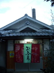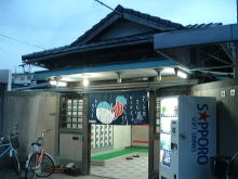 工場跡地が大規模再開発されて巨大分譲マンション群&マイカルタウンになったJR大久保駅南口。でも反対側の北口は、昔からの片田舎だ。 北口から北へ伸びる大通りの1筋東の道をまっすぐ北上し、2又路を右へ、次の2又路も右へ。僕は己自身の事情から右へ曲がるのは得意だが、そんなことはどうでもいい。あたりは一気に鄙びた田舎町へと風景を変える。 そんな中に当たり前のように佇む、小さな銭湯だ。 ![]() (左)下足室・脱衣室・浴室(湯気抜きがある)が3段式にこじんまりとまとまっている 外観はなかなか味があるが、中は何がどうってことはない。下足室・脱衣場は格子天井になっているが、全体的な造りは昭和中期チックな安普請で、やや雑然とした感じ。そして久々にお目にかかる汲み取り便所。 が、ただでさえ狭い脱衣場の隅に、小さなサウナ室(2名用)がある。この規模の小銭湯で、スチームでなく乾式サウナがあるのはちょっと珍しい。 浴室はややくたびれた昭和的タイル系。天井は青く塗りなおされていて美。 中央に細かい角タイル張りの湯船が1つ。真ん中に「ヘルスパー」(大阪編・文明湯参照)があるが、壁の説明書きを見ると「アワジェッター」という名前になっている。でも開発したのは芝浦工大のナントカ先生とあるから、同じものだな。 カランとシャワーは別々の位置にあり、鏡は立った位置にある不便なパターン。 とまあ素朴なお風呂だが、周囲の街並みに溶け込む外観とサウナで得点。明石市西部にはここと下の扇湯しかないから、ぜひがんばってほしい。 (2004.1.7) 闇夜に輝く誇らしげな「サウナ」 |