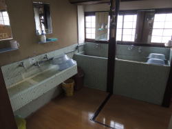 熊本県公衆浴場組合のホームページを見ると、温泉シティ山鹿に「末広」という組合加盟の風呂屋があるらしい。末広湯でも末広温泉でもなく、ムキダシの末広。 検索してみたら、旅館兼業の温泉銭湯のようだ。泊まってみたいなぁと思っていたら、なんと楽天トラベルで出てきたわ。もちろん即決。 で熊本の交通センターからチンタラ走る路線バスで約1時間、温泉プラザ前下車。目の前に、見事に再建されたさくら湯が堂々とたたずんでいる。 その裏側が観光案内所になっているので聞いたら、末広は道路挟んでナナメ向かいのすぐそこだった。 ![]() (左)浴場の側面はおしゃれな蔵ふう (右)正面にまわると・・・おお! 冒頭写真のように旅館と浴場が90度の角度で接している。右側の奥が「旅館末廣」。そして左側の手前部分が浴場で、地元の人たちが風呂道具を持って入りに来ている。 温泉シティの温泉プラザの真ん前であるから、言うまでもなく源泉かけながしの極楽風呂だ。 入口の突出ブースがなんともかっこよろし。 ![]() (左)温泉情緒が盛り上がる (右)玄関タタキと番台ブース 俺は泊り客だから、この入り口ではなく横っちょの旅館側から入った。でも一般客はここから入り、突出部の裏側に位置する番台で風呂銭を払う。 それにしても150円ってヤッスー。 ![]() (左)ここには「末広温泉」と書かれている (右)番台前から見た脱衣場 俺が入ったときは番台に誰もおらなんだ。その場合は150円をそこにある皿に入れておくのだろう。九州ではよくある全解放人間信用方式だ。 脱衣所は籠とタナとベンチだけで、コンパクトかつ簡素。 ![]() (左)ロッカーなし (右)脱衣場から見た浴室 浴室へは4段ほど降りる。ケロリン桶が大量に積んである。「泉質ですべりやすいのでご注意」みたいな張り紙がある。 浴室内はとってもキレイ。タイルも、2槽ある湯船フチの白い大理石みたいなのもピッカピカだ。そこを超透明なお湯がゆっくりサラサラと溢れて流れていく。なんか神々しさを感じるぞ。 んで注意書きの通り、油断するとツルリっといきそうな足裏ざわり。 ![]() (左)美しすぎると怖くなる (右)でかいライオンヘッドからザーッ! お湯は、そうとうぬるめだ。山鹿は全体にぬる湯の温泉だが、その中でもぬるい。とくに手前はぬるくて人肌より少し温いくらいか。 奥の小さいほうはもう少しあったかいから、若干加温してるんかな? それでも普通の銭湯に比べたらぬるいことには違いない。 ここはぬるーいお湯にゆっくり入るスタイルなのだね。 泉質は文句なし。なめらかツルツルの絶品だ。ちょうど他客は誰もおらんし、もう土座衛門のように浮かんでダラダラ漂うしかないな。 いやもう都会での暮らしを思うと笑ろてしまいまっせほんま。 カランからももちろん温泉旅館のほうも、古き良き旅館のたたずまいながら、清潔でなかなかよろし。 ![]() (左)旅館の廊下。部屋の引き戸が味わい深い (右)タイル造りの流し場が渋い ![]() (左)部屋の入り口の床 (右)6畳間、障子の向こうには3点セットの板の間あり 山鹿の中心部に立地し、近くにいい飲み食い処もあって非常に便利だ。 ただし経営者はほとんど愛想なしで、その点だけちょっと残念かも。しかしまあ泊まるには過不足のない快適な宿だった。 (2013.11.5) |
