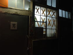 濃い〜。いろんな意味で。 路面電車の新町または蔚山町から歩いて5分ほど、何度か角を曲がったところ。表通りに小さな看板が出ている。 ![]() (左)表通りの小さな看板を見落とさないように (右)夜 そこに細い路地があり、奥に怪しき灯あり。 暖簾は出ていない。電灯の上に「電信町 くすり湯」と書かれた看板があるから銭湯なのだろう。そしてどういうわけか、すべての窓ガラスにガムテープがバッテン状に貼られている。 さすがの俺も入口でしばし立ち止まる激ディープな雰囲気だ。暗くてよくわからんが、古い木造2階建てらしい。 ![]() (左)細い路地奥で怪しいオーラを放つ (右)昼間 ![]() (左)ビギナーは若干の勇気が必要(たぶん) (右)昼間 「男湯」と書かれたほうの戸を開けて入ると、横に長いタタキになっており、番台にオヤジが座っている。 正面はいきなり広々した脱衣所だが、ちょっと薄暗い。黒々と年季の入った幅広の板張り床は、忍者屋敷かなんかのウグイス張りを思わせる。 壁のあちこちに棚があり、常連桶が所狭しと並べられている。さらにタオルなどが干されたハンガーもずらっと並んで生活感満載。2階への階段も桶置き場になっている。濃いですな・・・。 丸い籐籠がたくさん積み上げられているので、それを使う。浴室との間は全面古い木枠のガラス戸で、浴室の中がよく見える。かなりのイニシエ保存度だ。 ![]() (左)江戸時代っぽい独特の雰囲気 (右)常連桶 浴室も広いが、湯気が立ち込めてやや薄暗い。ドーンと高い四角錘天井で、中央に四角い湯気抜きが開いている。 外壁側は全面が大きな木枠の窓だが、この窓にも×ガムテープが外から貼られている。割れたときに飛び散るのを防ぐためなんだろうが、はがれて垂れ下がっているテープもそのまんま。なかなかすごい光景だ。 湯舟は奥に主浴槽、奥壁に設置されたパイプに開いた6ヵ所の穴から熱湯が滝状に落ちているのは珍しい光景。別の角からは水が常時注がれてかけ流し式になっており、41度くらいに保たれている。 窓側の奥には硫黄臭のする薬湯槽、ハップかな。こっちは44度くらい。かなり濃い乳レモン色で、指を第一間接まで漬けたらもう爪は見えなくなる。並みの銭湯でこれほど濃い薬湯にはお目にかかれない。これはポイント高いぞ。 湯は熱いが、天井が高いうえ古い窓から外気が侵入しているようで室内温度は低く、なんとなく露天の温泉のような心地がせんでもない。 出入り口横には水風呂があり、熱いくすり湯との交互入浴は相当ぬくもる。これはちょっとハマりそう。 カランは壁と島、合わせて10ヵ所くらい。 おや、男女仕切り壁の上には、箱型の電光板にこの銭湯のいわれが書いてあるぞ。これはなかなか読ませる。 「電信町のくすり湯は庶民の霊泉として、遠く島原・天草は言うに及ばず、関西・中国・四国からも入湯に来られて居ります」 「電信町のくすり湯は日本の三大人工温泉として・・・」 残りの二ヵ所はどこや? 夕方6時台、先客2名、あとから3〜4人がやってくる。 外観や全体の雰囲気はかなり濃厚だが、この熱いくすり湯の魅力でしっかりと固定ファンがいそう。俺もたっぷり長湯した。 (2005.12.13) ふしぎな魅力※昼間および内部の写真は2012年8月撮影、追加 |