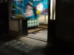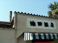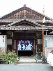 阪急池田駅から南西へ徒歩5分ほど。駅前の喧騒から細い路地をちょっと入ると、昔ながらの家並みに挟まれてこんな銭湯がたたずんでいる。 ![]() 暖簾をくぐると・・・おっ、キンタロさんじゃありませんか、こんなとこで何をやってるんですかキンタロさん。 ![]() ![]() (左)格子天井の下足室の風情もなかなか (右)おうりゃぁーと25枚のタイル内で大暴れ ![]() 戸を開けると、どっしりした木の番台に初老のおかみさんが座って新聞を読んでいる。 広めの脱衣場は伝統的な銭湯風景。木製の男女仕切り壁、格天井に2枚羽のプロペラ。ロッカーのみアルミ製の新しいものだが、昔ながらの柱や梁も美しく、前栽に外便所の風情もよし。くつろぎますなあ。 天井のキワにはずらっと小窓が並んでおり、古い建物ながらも日のあるうちはかなり明るい。ええ感じや。でも、真ん中に置かれたガムテープ補修だらけの黒いソファはちょっと雰囲気と合いませんな。 浴室との境には、熱帯魚柄の擦りガラス絵(エッチングというのかな)がある。 浴室は真新しいタイル張りに改装されていて、建物の外観から想像されるようなレトロな雰囲気はない。ちょっと残念。中央に深浅の主浴槽、そのほか電気、ジェット、スチームサウナ。立ちシャワーが3つもあるのに水風呂がないのも残念。 朱色っぽいタイルの色調は僕の好みじゃないが、脱衣場と同じく壁上部に窓が大きくとってあって、明るくて気持ちがいい。 あがりは、この雰囲気よろしき脱衣場で大山牛乳ゴクゴク。ぷはー。 (2004.5.7) |