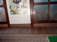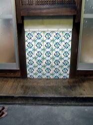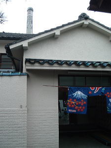 JR学研都市線の徳庵駅から南へ徒歩7〜8分。ユル〜イ昭和的な街並みの中に現れる、典型的な大阪伝統型の凸玄関。 ![]() 暖簾をくぐると、そっけなく合板で改装された下足室。 脱衣場はけっこう広々。青緑がかった灰色できれいに塗られた折り上げ格天井が目立つ。古い木のベンチなどもあり、前栽には鉢植えがぎっしり置かれていて、なかなかにくつろげる雰囲気。でもその他の部分はやはり昭和的な合板で改装済。 浴室もきれいに改装済みで古さはなし。中央に深浅2槽、奥に電気と生薬湯の2槽。ジェットつきの深い主浴槽には、生野区の生照温泉と同じ備長炭入りの箱が沈められている。入口すみに水鉢あり。 湯船のヘリには1×2cmの細かい青タイルがびっちり張り込まれ、しかもこんもりと尾根状に丸みがつけられている。大手工務店のパターン化した内装にはない、見るからに古典的でめんどくさそうな、でも丁寧な仕事だ。 他にも初めて見るセンスのいい小さめタイルが使われていて、好感を感じる。 奥の壁には熱帯魚のモザイクタイル絵がある。 上がりはカルピス英才系を飲みながら、扇風機の前でホヤヤ〜ンと。 おかみさんによると築50年、天井は何度も塗りなおしているという。浴室は10年ほど前の改装だそうだ。 「サウナもないしねぇ・・・」 と謙遜しておられたが、この季節はサウナより冷水風呂がほしいなぁ。 (2004.7.4) |