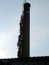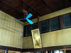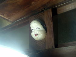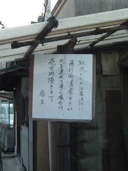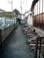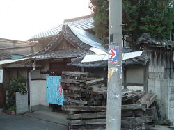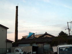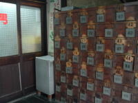 八尾市在住のめぐりんさんという方から、濃厚なる銭湯情報をお寄せいただいた。 自転車で市内をウロウロしてたら、すごいよさげな銭湯見つけましたよ。 煙突は縦半分側(たぶん日の当たる側?)につたがびっしりからまっていてイイお味です。玄関前には廃木。 現地で店名は確認できませんでしたが、八尾市のゼンリンによると「末広湯」だそうです。山本の駅前にあるお風呂と同じですね! 建物も似た感じ。 ぬぬっと思って調べてみると、銭湯組合リストにもインターネットタウンページにも載っていない。ハテ、と思っていると、数日後にこんなメール。 末広湯の調査に踏み込みました。ちゃんと営業してました。年内は無休との張り紙がありました。 脱衣場もそこそこレトロです。タイルの隙間をパテで埋めてあるところなどを見ると、まだまだ営業を続けていく意欲が伺えます。番台にはちゃきちゃきした可愛いおばあちゃんがおられました。 一度、行ってみて損はないと思います。 カカカカラダが、カラダが勝手に八尾方面へ向かう〜。 で、アホみたいに来てしまった近鉄大阪線恩智駅。高安山が目の前に迫る。ここまで来ると大阪とはいえダラーンと田舎ムードに満ちております。 駅を出て山に向かって3分ほど歩くと、一種異様な煙突が空に屹立しているのを発見。いやぁ、これまった初めてですがな、こんなもん。 ![]() ![]() (左)ん?煙突になにやら・・・ (右)わっしゃわっしゃと這い登るツタ。鬼気迫る生命力 そしてそこらじゅうに積まれた燃料用の薪がまたアンタ。 ![]() ![]() (左)正面へ向かう路地 (右)なんぼでも沸かしたるでぃぃぃ〜と気合十分 ![]() ![]() (左)路地は入浴者以外通行禁止、犬の散歩は罰金1万円! (右)古〜い木戸と下駄箱 暖簾をくぐると古い木の下駄箱がお出迎え。天井は細かな格天井。 靴を脱ぎ、狭いサッシの戸を開けて中に入ると、番台には初老のおばちゃんがにこやかに座る。そして、こじんまりした脱衣所にはこれがデデーン。 ![]() ![]() (左)出ましたケヤキ一枚板、漢数字浮き彫り (右)これを読めない人が急増しているとの噂 ![]() ![]() (左)番台も上等 (右)神棚は隅にある 天井や壁は合板で覆われ、阪神優勝ポスターなどが賑々しく張られていて、伝統建築の風情はやや損なわれている。が、天井中央からはイニシエの巨大プロペラがぶら下がり、脱衣所の手前には小さな前栽もある。 その脇の便所は汲み取り式、しかもトイレットペーパーではなく「ちり紙」が設置されている。こんなもん今どきどこで買うたんや。 浴室手前には100円コイン式サウナ室が置かれているが、機能しているかどうかは不明。浴室との境壁にはガラスブロックが使われている。 浴室は、幅は狭いが奥行きはけっこうある。床はやっぱり石畳、すきまに2cm角タイル埋め込みのクラシカルパターン。 湯船は男女隔壁に沿って深浅2槽、フチは黒御影。浅風呂がけっこう広く、2連ジェットつき。しかも底には不揃いな小石型タイルがカラフルに張られている。湯船外側の座り段にも同じ不揃いタイル。 出入り口の右側には女湯とつながった白御影の水鉢があり、反対側には立ちシャワーもある。 夕方5時すぎ、年寄りから若いイレズミ者など、そこそこお客が入っていた。 上がりは牛乳からビールまで飲み物あり。 番台のおばちゃんに「渋いロッカーがありますね」と声をかけると、 「100年くらい前の建物やから。建てた人はもう死なはったけども。ロッカーはそのときからおますねん。はげてきたからニスは塗りなおしてますけど」 と言う。 芸術的イニシエ空間という感じではないが、煙突のツタとおばちゃんの人柄も含めて星付きだ。 (2004.12.7) (めぐりんさん、情報をありがとうございました) ![]() ![]() (左)前栽手前には古い一枚板の廊下 (右)日が暮れるとさらにディープな雰囲気 |