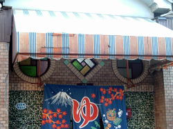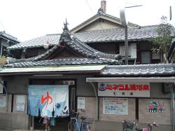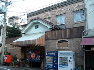 JR阪和線の南田辺駅から東に少し歩くと、田辺を南北に走るちょっとさびれたアーケード商店街に出る。それを南へ歩いて道が少し曲がるあたり、魚屋さんの隣に忽然と現れる。なかなかに情緒満点のレトロな外観。 暖簾の上のステンドグラスがまたいい味を出している。 ![]() (左)賑々しく魚の並ぶ店の隣でさりげなく暖簾が揺れる (右)カッコイイ・・・ 内部はさほどの古さはないが、アルミロッカーの鍵はいくつかなくなったのか壊れたのか、強引に昔の丸型錠を取り付けてあって楽しい。 浴室は、湯船スペースがけっこう広々していて、お湯たっぷりな印象。浅い部分が広くなった主浴槽と、普通はジェットが出ている部分からなぜか気泡がブクブクでている2人用の浴槽(ややぬるめ)、そして電気風呂はバスクリン入りで44度くらいと熱め。出入り口横には冷水槽もあり、4種の湯温が楽しめる。 土曜日の午後5時前後に入ったが、出るまで誰もおらず完全貸切だった。いい風呂なのに、もったいないなあ。 ちなみに、南田辺駅東口そばのおでん屋「笑門」は相当イイ。一品モノも豊富で、安いのにどれもこれも全部やたらとうまい。閑散とした商店街でここだけが賑わっている。 (04.1.31) 安くていい店 |