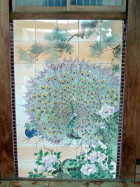 JR学研都市線の放出(はなてん)駅から北西に徒歩5〜6分。見るからにこじんまりとまとまった、でもギュッと味わいの詰まったようなレトロモダンな銭湯が現れる。 銭湯組合のホームページには掲載されていないから、組合非加盟なのだろうか。 暖簾をくぐると年季の入った木の空間だが・・・おおっ、意表をついてこんなタイル絵がお出迎えだ。10cm角40枚分。 スッキリいい感じ ![]() (左)銭湯のタイル絵としては孔雀は初めて見た (右)中心部拡大 木の戸をなめらかに開けると、ここもまたさわやかな脱衣場。漢数字が浮き彫りにされた木のロッカーはヒノキ一枚板、木目が美しい。小さい庭から便所へのアプローチも、よく手入れされた寺のような風情。シンプルかつ、すばらしい。 浴室もコンパクト。男女仕切り側に主浴槽と、浅い副浴槽がならぶ。全体に新しいタイルで改装されているが、湯船のヘリにはどっしりした古い石が使われている。 このへり部分の石、カマボコ状に丸みを帯びているのだが、これまで見た中で最も丸い。断面は完全に半円形だろう。 ザブンと浸かると、この丸みの上を湯が溢れてザア〜っ。ここに頭を乗せて体を浮かべ、我仙境に至る。 仕切り壁の給水穴には、ゲージツ家が作ったような不思議な粘土製オブジェが取り付けられている。 すみずみまで磨き上げられた浴室といい、木のロッカーといい孔雀といい、美的感覚に満ち溢れた芸術的小銭湯だ。 (2004.3.6) ![]() コンパクト&ビューチフル |