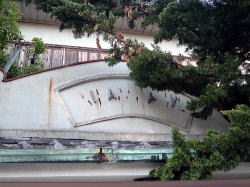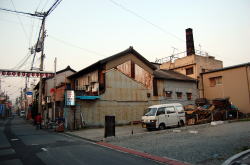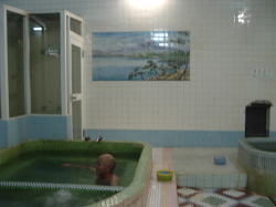 山陽電鉄飾磨駅を南へ5分ぶーらぶら。薬師旅館というやってるのかどうかよくわからない系の旅館の隣に、古い系の銭湯があるワケ。 薄いアズキ色というのか、それ系の色をしたアッサリ系というか朴訥系の看板建築なのか何なのかナガシカクい系の玄関上の飾り壁が印象系。 建物の横には燃料系の廃材が積まれている。 ![]() 暖簾をくぐると靴脱ぎの玄関スペース、あがりがまちは若干珍しい系の細かなタイル敷き。 んで戸を開けて入る、その戸がまた激しく使い込まれた古い系の味わい系で郷愁系なワケ。 中に入ると番台に若干くたびれ系のおやじさん、湯銭350円とは安い系。 コンパクトな脱衣所は高度成長期系のチープな新建材で改装して軽く30年くらいは経ってます系で、脱衣箱は化粧合板。 ともかくスッポンポンになって浴室へと進むと、男女壁に沿って湯船が3つ並んでたりするワケだけど・・・オット! 中央の深風呂はイニシエ系の白っぽい御影石系、湯船内側の腰かけ段までもがどっしりと石造りやおまへんかーの歓喜系。 その右側にはジェット2連の浅風呂、そして左側は電気風呂だけどどういうわけか通電していなくて若干残念系。 湯船の周囲は大阪式に腰かけ段が取り巻いてる系なわけだけど、播磨地方らしく低め系。 はじめは2人ほど他客がいたけど途中で若干ひとりぼっちになっちゃった系。 んで石造りの深風呂は入っているうちにお湯がどんどん沸いてくる系。お客が大カランをひねって自分でうめる系だけど、44度くらい以上まで我慢して、ひさびさに熱い湯を楽しんだってワケ。 奥にはスチームサウナもある。いちおう運転はしているがスチームが弱くてどっちかというとフツーの浴室より若干湯気が大目かな程度で微妙に残念系。 でもその横にはちゃんと水風呂もあってオッケーなワケ。 床やカラン周りはわりと新しいタイルで改装済みで、シャワーの勢いはバッチリ系。 んでまた出入り口の近くには立ちボディシャワーもあったりする系、だけどこれも水圧が若干弱い系。 と古い系のわりには設備はそこそこ揃ってる系だけど、管理はいまひとつ系で微妙に若干くたびれてるかも系なわけ。 でも石の湯船はなかなか渋いし、月に1回しか休まないのは感心系。 (2009.4.8) |