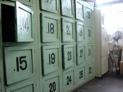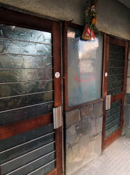 2年半ほど前に前を通ったときは休業中だった。道行く人に聞いたら、「おばあさんが倒れなさって」とのことだった。 それで心配していたのだが、最近になって、営業しているらしいとの噂を聞いた。これは行かねばならんでしょう。 で、やってきた風呂バカ大将。大山寺かられんが坂を下り、西園寺道を渡って「お好み焼き」の路地に入ったら、二股の左に見えてくる。 尾道駅から商店街経由で直行するなら20分くらいかな。アーケードが切れた先のコンビニ「ポプラ」の角を左折し、坂を登って「お好み焼き」の路地を探すべし。 ![]() (左)路地の二股で左・・・そうら来たアレじゃけ (右)ドキッとする存在感じゃけ 裏にまわると太い煙突じゃけ新巻じゃけ尾道の坂道をうねうね歩いてたどり着いた瞬間、もうアバラがきしんでるのかと思うほどの胸キュン銭湯風景が眼の前いっぱいに展開する。 玄関の向かいには小さな庭があって、クリの木の下の池には鯉が泳いでいる。さすが広島はカープじゃけん朝日ソーラーじゃけん。 暖簾をくぐると狭いタタキに年季バリバリ木製番台、傘入れ仕込み。 そしてそこに座るはちょっと知的な感じのおばあさん、嗚呼あなたに会いたかったんです。お聞きすると、病気ではなくお怪我だったとのこと。無事に回復され、銭湯再開番台復帰に感謝感激です。 感無量の番台板張りの脱衣所、開け放たれた表の戸や窓。無敵の風情に、背骨の髄液までほぐれ切って困っちゃう。 窓に吊るされた風鈴がチロチロって、ああもう、どうしたら。 ![]() (左)ロッカーのフタの小さな穴に注目 (右)脱衣所から表方面の郷愁泣け泣け攻撃 さて裸になって、ロッカーのカギは・・・おっと、内側落としだ! 久々に見たぞぉ、といじっていたら・・・あら~、閉めちゃった。これは自分では開けられない。 「アッ、しまった!」と叫んでおばあさんを見ると、番台の上に、因島の紅梅湯で見たのと同じ金具が用意されている。彼女はそれを示してニッコリ笑いながら、こうおっしゃった。 「上がったときにね」 つ、ついにこの開錠金具を使う日がやってきたのか! 気持ちを落ち着けて風呂場へ向かう。浴室への戸はアルミサッシだが、上部はレールのかわりにこれまた不思議な金具で固定されている。 ![]() (左)浴室方面 (右)この金具ははじめて見た 風呂場は低いカマボコ天井の小空間。細かいタイルづかいの壁や床の随所にひび割れがあり、白パテ補修が施されている。 飾り気のない浴室のほぼ中央に深浅の湯舟がひとつ。一方の壁にパイプが2本走り、水と湯のカランが並んでいる。シャワーはないが、タナ上にせっけんやシャンプーが置かれているのが嬉しい。こんなサービスはレトロ銭湯では極めて珍しい。 深いほうの湯舟には手すりがあり、ゆるいジェット2連がある。湯は42度弱くらいで、おばあさんの人柄同様たいへんやわらかい。 古い古い浴室だが、清潔に管理されている。カランの湯や水の出も文句なし。桶や椅子もたっぷり用意されている。 あとはもう、この場のオーラと湯に体を委ねるのみ。目を閉じて、体で感じよう。 さあ、上がっていよいよ例の開錠金具を使うときがやってきた。 金具を借りて適当にガチャガチャやってみたが、さっぱり開かない。おばあさんが「横のを見て」とおっしゃるので、横のロッカーを見ると一目で構造がわかった。そして再度試みると一瞬で開いた。落ち着けよ俺。 脱衣所の隅に家庭用冷蔵庫があって、数種類の飲み物が入っている。パンツ一丁でローヤルゼリー飲料100円を飲みつつ、おばあさんと語らう。この建物は「100年から経っている」そうだ。 彼女は「今なら誰もいないから」と言って、女湯も見せてくださった。 女湯のロッカーはさらに旧式の木製に漢数字モノ、そして台上に長方形の籐籠が並べられていて、男湯よりも郷愁5割増しだ。 ![]() (左)女湯の脱衣所 (右)女湯の浴室、ここは男湯と同じ 6時前後、終始貸切状態だったのは嬉しくもあり、少しさみしくもある。 心も体もほっこりするお風呂。場所も坂道散策のちょうどいいところにある。尾道で本物の風情を感じたければ、ここは外せないだろう。 おばあさん、また来ます。末永くお元気でいてください。 (2007.9.2) 商店街への坂を下りながら振り返る追記:その後、番台のおばあさんは亡くなり、息子さんが後を継がれましたが、長らく休業されています。2017年4月現在。 |