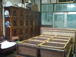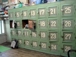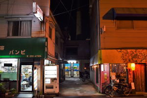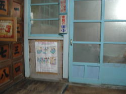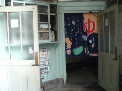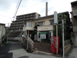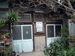 レトロ銭湯の多い尾道でも最強の骨董品的銭湯。 建物自体が隠遁生活を送っている。もはやわざと隠してるとしか思えない。しかも営業時間はたったの4時間てアンタ。 尾道駅すぐ西のガードをくぐって北へ700メートルほど、千光寺山の西側山すそ。細~い路地奥、看板もなければ煙突も低い。おまけに路地からさらに1歩奥まっていて、その前に多種多様な樹木が激しく繁茂している。 まん前まで行かなければ絶対に気づかないだろう。 ![]() (左)あと3歩で到着、まだ見えない (右)葉の落ちた冬でこれだと、夏はいったい・・・ ![]() 高台から眺める。中央の土色の家の左隣。写真右端に白い煙突 そして夜。発見不可能状態暖簾をくぐって戸を開けると、タタキに見上げるような高さの立派な木の番台があり、カンロクあるおかみが鎮座する。下駄箱はなく棚のみ。 こぢんまりした脱衣所は黒光りした板張りの床。低い天井も板張りになっている。 そして壁には当然のことながら漢数字が墨書きされた木のロッカー。鍵なんかあるわけない。フタを開けると昭和初期的広告が貼り付けられている。 浴室入口の戸も木のまんま。水色はナミダ色のマニア感涙色。 ![]() そこらへんに何気なく古い広告が。好きな人にはたまらん世界 古びた浴室は、懐かしくも細かいタイルばり。 湯舟は、男女仕切り壁沿いに深浅浴槽が一つだけ。フチ外側には不揃いの小石状タイルが貼られている。 どれ、さっそく・・・うわっち、こりゃ熱い、47度くらいある。他に客もいないし、水栓ひねってうめまくり。あ~気持ちエエ。 深い湯舟の内側は3段の階段状に深くなり、1cm角の細かいタイルが底までびっしり貼りまくられている。 しかしまあ尾道くんだりまで来て、こういう風呂に一人ゆったり浸かっているキブンというものはなんとも言えませんな。いまここで俺は何してる? この不思議感! カランはなんと、意外にもスーパー銭湯的な自動調温型でシャワーつき。だが湯の圧力は弱い。蛇口だけとっかえたらしい。 上がりは飲み物もなし。 このあと行った飲み屋の相客が銭湯好きの現地民で、ここ以外の尾道銭湯全5軒を正確に把握していたが、この銭湯のことだけは存在すら知らなかった。 隠れぶりや営業時間の短さから考えて、早めに行っておくほうがいいかもしれない。栗原1丁目バス停から北へ2つ目くらいの路地を右折。明るいうちに根気強く探すべし。 (2005.1.7)→尾道旅行記 追記(2007.9.22) 「だく」さんという方から、夏の寿湯の写真をいただいた。 こんなんです・・・あはは。 もはや秘密基地だくさんがここのご主人に聞かれたところによると、 「昭和6年創業、脱衣場にある鏡は栗の木、ロッカーはケヤキの木でできていて、床板も含めて全部創業当時のまま」とのこと。かっけ~! (だくさん、ありがとうございます) |