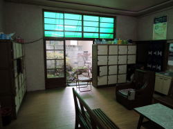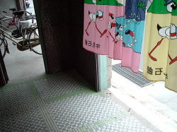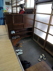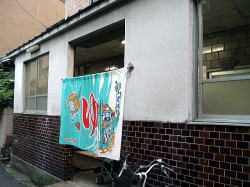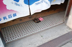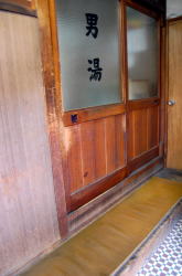 春は名のみの風の寒さや。 高松駅から南へ数分の兵庫町通りを西へ西へ。この通り沿いには銭湯が点々と並んでいる。 1kmほど進んだあたりで、前方の角地に四角く白い、小さな建物が見えてきた。昔の銀行などの洋風建築をきゅーっとミニチュアサイズに縮めたようなかわいらしさだ。 背の低い建物の上部のかどっこに、「えびす湯」と緑色の文字で書かれた小さな四角い看板がくっついている。 ![]() (左)ひときわ低い (右)後ろは瓦屋根の普通の日本家屋 暖簾をくぐると、狭い狭い靴脱ぎ場がある。奥行き1メートルに満たないだろう。この薄べったさはあまり経験のないものだ。かがんで靴を脱ごうとすると尻は暖簾の外に出るし、頭は正面壁にぶつかりそうになる。楽しいぢゃないか。 だがここの床に敷かれている茶色と緑をあしらったタイルワークは俺好みだ。脱衣所入口の引き戸も渋い。 ![]() (左)子どものサンダルで奥行きのなさがわかる (右)あがりがまちも幅がないぞ〜 番台には誰もいなかった。料金だけ置いて服を脱ぐ。 外観同様にこじんまりとした脱衣所は、天井や壁が新建材でそっけなく改装されている。ロッカーは木製だがフタはベニヤ。木のベンチが1つあるだけで他になにもない。 浴室もコンパクトだが、上を見てギョッとした。 天井の湯気抜きが見たことのない形をしている。男湯女湯の天井全体を集約する四角錘天井で、ここまでは関西では一般的なのだが、その頂点にある湯気抜き部分だけが高々と、男女別々にスポーンと抜けている。 天井自体が男女別の四角錘というのはたまにあるが、湯気抜きだけがなぜわざわざ男女別なのか。謎だ。 他は特にどこがどうということもないシンプルな浴室だ。 湯船は男女境に沿って深と浅、湯はぬるめ。奥に緑色の薬湯があるが、入ろうとするとこれが激熱だ。別府級。47度は軽く越えている。 足をつけた俺が呻いているのを見て、子どもを連れた若い父親が、「うめないと・・・熱いんですよこの時間」と教えてくれた。俺は桶に水を4杯くんで46度くらいに下げ、1分耐えた。 窓側にカランが並ぶがシャワーはない。そのかわり、せっけんやシャンプーが常備されている。こんな小さな銭湯でこのサービスは珍しい。古いけど清潔感もある。 午後4時半すぎ、他客は2〜3人。 冷たい風の中を歩いて縮こまった体も、熱湯薬風呂でぽかぽかになった。 さて、うどんでも食うか。 高松の町外れ、鄙び風呂屋の早春賦。 (2009.3.14) ※「レトロ銭湯へようこそ西日本版」に掲載されました。 (本書が買える銭湯一覧) |