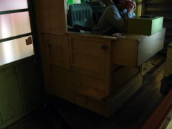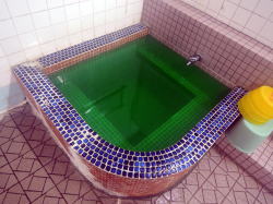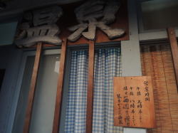 琴平駅から南東へ徒歩数分、古い民家や商店が立ち並ぶ重々しい街道筋から少し入ったところに、ポンとたたずんでいる。琴平で最後の1軒だ。 横を流れる水路の情景がなかなか泣かせる。 ![]() (左)ええ感じ (右)側面の板塀もええがな ![]() (左)温泉、との断言が渋い(注:温泉ではありません) (右)ガラスの柄がヨイ! 暖簾をくぐると狭い下駄箱スペースがあり、白塗りの下駄箱がある。がこれが正味の下駄サイズで、俺のトレッキングシューズは厳しい。 脱衣場に入ると、大きめの番台に、わりとそっけない感じのおかみさんが座っている。 ここで一瞬たじろぐほどの存在感バリバリ物体が視界を遮る。なな、何だ。茶色い衝立だ! 風呂屋に衝立はよくある。しかし、ここではその一面にびっしりと、かまぶろ温泉の由来がるる墨書きしてある。 風呂に入るんならまずこれ読めと。んで「同意する」にチェック入れてから進めと。んなこたない。 長い文章なので全部読んでないが、蒸し風呂やサウナとも違って常に外気を取り込んで云々――京都八瀬のかまぶろ温泉と姉妹店…そうなのか! しかし入り口に立ってこんなん読んでるより、はよ風呂に入りたい。 脱衣場は田舎の木造銭湯共通のレトロムード。 渋い木の脱衣箱にアラビア数字が書かれ、部屋の真ん中に木の高座というのか、よくあるあの台が置かれている。 浴室は貸切りだった(あとからジモティオヤジが2人きた)。 おっとこれか! 入ってすぐ左手に、重量感のあるブロック積み上げイグルー造りのサウナ室のような小部屋がある。 問題のかまぶろ温泉に違いない。 3人くらい入れそうだが、覗いても・・・稼働してないぞ・・・。 浴室中央にタイル張りの深浅主湯。深は水中金属パイプからジェットが2本勢いよく噴出している。やや熱目で、よく歩いた足腰に心地よい。 奥左に棺桶サイズの水風呂があるが、こいつがなかなかのスグレものだ。1辺1センチ以下の非常に細かいタイルばりで、しかも寝風呂になっており、上半身部の底がカーブして背中から首へとだんだん浅くなる。 これはよい! ファラオの棺のようだ。しかも水をいっぱい溜めてザバーができる。 さらに右奥には一人サイズの薬風呂がある。緑白色のにごり湯だが、湯船のへりより喫水線が低く、見た目お湯が少なそう。 でもせっかくやから入ろう・・・むむっ、入ると底が深いな。それよりアチチチチ! 熱いがな! あわてて飛び出て水風呂で冷やす。これはとうてい入れる温度とちゃう。50度くらいあるで! あとから入ってきた常連おやじの許可を得て、水でうめまくる。 おやじによると、「そこはあまり入らない」とのこと。出ましたレトロ銭湯名物、行方不明の存在意義! 水風呂で半やけどの足を冷やしながら待つうち、なんとか入れる温度になった。 うむ。なかなか濃厚で悪くない。しかし、あとからあとから熱いのが底から沸いてくる・・・。 かまぶろ、ではなく、かまゆで、なのか? その他、カラン・シャワーはレトロ銭湯なりに機能してて、使い勝手は悪くない。 上がると番台はおやじに替わっていた。 番台前に冷蔵庫があり、おやじに言ってとってもらう。他の飲み物を押し退けて紙パックのヨーグルト飲料がたくさん入っているので、それをもらった。愛媛のメーカー、50円。 おしゃべりなおやじさんで、女湯の客と大きな声でずっと話し続けていて終わらず、話は聞けなかった。 それにしても、「かまぶろ」は機能せず、「温泉」でもなく、薬風呂は「かまゆで」と、人を食ったような宮沢賢治的銭湯だ。 しかしこういう風呂との出会いも旅の醍醐味。心に残る一湯となった。(2013.7.24) |