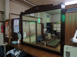 坂出の駅前にはドデーンとイオンがある。 そのハコがデカくて見えないのだが、無表情な壁面に沿って右へ回り込んでいくと、風呂屋の煙突が見える。 なんと、駅から3分、イオンの隣! 中小の地方都市でこれは珍しい立地だ。この銭湯はイオンで買い物してから行くのが正解だろう。とりあえずパンツを買った。 でこの銭湯、なかなかの味わい深い外観ではありませぬか。救ってますよ、全国どこも同じ意匠の巨大スーパーに蹂躙される坂出駅前の景観を。 ![]() (左)アーチに丸い電燈がしびれる〜 (右)暖簾をくぐると狭い廊下スペース 中に入ってたまげたね。ザ・正調日本銭湯風情。どこもかしこも美しい。 ![]() (左)タタキに木の番台、おかみさん素敵 (右)広々した郷愁空間 ![]() (左)このレトロな鏡がまたスバラシイ (右)男女仕切りと反対側には庭がある 浴室入口付近のタイル無意識にすーっと深呼吸してしまう。 庭がまたエエ。石の池があって、猫の置物があって、金魚が気持ちよさげに泳いでいる。この掃き出しのとこにわざわざ椅子が置いてある。特等席やな〜。 もうこの時点でニコニコで服を脱ぎ、浴室へと向かう。 入口手前のシュロマット部分に亀甲型えんじ色タイルが貼られているが、浴室へ入ったところにもステップみたいに同じタイルの段がしつらえてある。 俺、こういうちょっとした演出にやられる傾向があるのよね。 男女壁に接して深浅の主湯。深風呂の半分近くが浅風呂よりさらに浅くなっているのが珍しい。湯船へりの白いタイルがよい。 奥の隅にサブ浴槽、こちらはややあつめの薬湯だ。 外側壁に並ぶカラン。カマボコ天井は板張りの古いモノ。 椅子や桶は隅にきちんと積まれている。 一般的な光景だが、風情満点の脱衣場を通って入ると、そう、これよね! といちいち好感を覚えてしまう。風呂屋に限らず、これが商売の極意だろう。 さっぱりとした風呂あがり、買ったばかりのパンツをキュッとはく。キモチエエ〜♪ おかみさんによると、建物は100年くらい経ってるらしい。それをきっちりと補修しながら現在に至っている。 常連客に愛されているのはもちろん、自転車旅行の若者などもしばしば立ち寄るそうだ。 列車の時間ぎりぎりまで脱衣場でくつろいで行ける、ナイスすぎる銭湯。銭湯ファンにとっては、巨大イオンなど足元にも及ばぬ存在感がある。(2014.4.3) ※「レトロ銭湯へようこそ西日本版」に掲載されました。 (本書が買える銭湯一覧) |