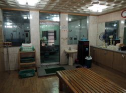 プアン(扶安)という小さな田舎町に来た。さっそく宿探し&風呂探し。 バスターミナル近くでモテル兼業の設備系らしき銭湯を2軒ほど見つけたが、もっとディープなんはないのかな。 市場を抜け、小学校の北側に歩いて行くと、レンガの古い煙突を発見! 表に回るとかなりキテル感じがあるが、営業しているようで、受付におやじの姿が見える。このとき18:20くらい。何時までかと聞くと、「今なら入れるよ、19時までだ」というような答え。5500ウォンのところを5000ウォンにまけてくれたけど、えらい高いな。 女湯1階、男湯は2階。階段にはモノが多い。 脱衣場にはいると、運動器具がいろいろ置かれている。ベンチプレスまであるぞ。そうか、これらを使い放題ということで高くしてるんやな。 かなり本格的浴室はすでに電気が半分消されていて薄暗いが、けっこうな広さがある。 30年くらい前に浴槽を改装し、10年くらい前にカラン・シャワーをなおした感じだろうか。 暗い〜、電気つけてくれい!石張り床の中央に主湯がデンとあるが、腰掛け段が高い。45cmくらいある。 右壁にカラン・シャワーが並んでいるので、そこをひねっていると、おやじが来て「そこは水しか出ないあっちのシャワーを使え」というようなことを言う。 左側壁に立ちシャワーが並んでいて、確かにそっちは湯が出た。ここに石鹸もある。 主湯は2槽に仕切られ、終わりがけのせいか、だいぶ湯が減っている。広いほうがぬるいが、これがやたらとぬるくて入る気がしない。幸い、狭いほうは41度くらいあった。 奥にサウナと水風呂があるが、サウナはすでに消えている。 水風呂は手前に張り出していて、主湯と同じ高さの段があって、主湯から水風呂へ行くために一度床面へ降りなくても、主湯の段から水の段へと空中45cmの移動が可能だ。 終了間際でイマイチ満足感に欠けるが、水風呂と熱いほうの風呂とを何往復かしているうちになんとかぬくもってきた。 俺が最後の客かと思っていたら、途中で一人入ってきた。でもここの家族かもしれない。おやじは片づけ始めている。 そして7時10分前くらいには、おやじも裸になって風呂に入ってきた。 風呂だけで5500ウォンは高いが、ここはスポーツ器具の付加価値で客を呼んでるのだろう。銭湯料金バラバラだと、こういうのもアリなのね。(2016年3月) |