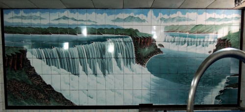チンジュ(晋州)の市外バスターミナルから西へ10分ほど歩くと、晋州城址がある。秀吉軍との激戦地らしいが、その丘へ上って町を見渡せば、あるよあるある風呂屋の煙突。 徒歩圏内にいくつもあるうち、いちばん気になったのがここ。城址公園の北側すぐそこだ。 ![]() (左)真ん中の茶色い煙突(青い煙突は何かワカランかった) (右)東側から 小さな交差点の角地にある3階建て。茶色いレンガ調のタイルに覆われた外壁と、アーチになった男女の入口がじつにそそるねぇ。 どうやら旅館を兼業しているようで、角に別の入り口がある。 左のアーチが男湯だ。数段上がってアーチをくぐると料金ブースがあり、おっちゃんが座っている。 その横手がすぐ下足スペースになっていて、カーテンくぐればもう脱衣場だ。 階段を上ったり重いドアを開けたりさせられることが多い韓国銭湯にしては、えらく簡単なつくり。むろん俺はこういうチープなのが好きだ。 ![]() (左)脱衣場から下足スペースを見る (右)脱衣場 脱衣場はこぎれいでこぢんまり。浴室入口には使い放題のタオルラックがセッティングされている。 裸になって浴室へ…おぉーっ! でっかいタイル絵や! ![]() (左)湯船とタイル絵方面 (右)洗い場方面 浴室もミニサイズで、床は切石が張り詰められている。 湯船は主湯が一つ、湯はややぬるめ。その横に3段上がって、主湯より広い水風呂がある。いずれも周囲は石張りだ。 洗い場は六角形の島カランが真ん中ドーン。壁にもカランと立ちシャワーあり。 ![]() イグアスの滝やろか・・・このチッコイ風呂屋にこの立派なタイル絵は意表を突かれたなぁ。 水風呂の横には強力なサウナもある。 内部は石の壁昼下がりの時間帯、一人だけいた先客が帰ったあとは貸切になった。 城址公園そばのレトロな建物、清潔さ、タイル絵と、小粒ながらもよき風呂屋だった。今度は泊まってみよかなー。(2014.5.13) ![]() (左)屋号は城址の◆石楼(チョッソンヌ)から。夜はたぶんネオンが光る! (右)またね〜 |