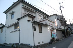 神戸にこんな銭湯があったとは・・・新鮮な驚き。 垂水は神戸の中心地からちょっと西に離れた漁港のある町。駅前は震災後に再開発の巨大ビルが乱立したが、ちょっと離れると昔ながらの家も残っている。 垂水駅から北西に2〜3分歩くと、幹線道路に沿ってどっしりとした和風建築が現れる。ちょっと旅館っぽい印象だ。 ![]() 道路からちょっと奥に入って玄関があるのがいい感じ。小屋根の下に屋号入り電灯が左右に2つ。暖簾をくぐると下足室は細かい格子の天井で、脱衣室入口の木製の戸も重厚だ。 張り紙がイマイチ戸を開けるとまた「男湯」の暖簾があり、番台には90近いと思われるような婆さんが座っている。 脱衣室も濃厚なレトロムード。壁はしっくい、格天井に扇風機が回る。開け放たれた窓の外にはタオル類が干され、その向こうに庭の木が繁る。 木のロッカーは補修のためか外枠にカラー布テープを貼ってあるが、1段ごとにテープの色を変えてある。これがまた不思議に味がある。ロッカー中央には大きな漢数字、古い文字だ。「拾貳」のロッカーを使わせていただく。 浴室に入って驚いた。こいつは初めての光景だ。 浴室の中央に、幅90cm長さ3メートル弱の、楕円形の細長い浴槽がある。何これ? 大人が浸かるには狭いが、周囲には腰かけの段がある。どうやらこの周囲に腰かけて、ここの湯を桶でかい出して体を洗えということか。 んで主浴槽は・・・と、奥のサウナ(有料)の横にある。ジェット気泡が吹き出ているが、これほど遠慮がちな位置にある主浴槽は初めてだ。手前の面がゆるく半円形に飛び出ていて、フチには細かいタイル張り。 主浴槽の奥のタイル壁には、このあたりにはめずらしく大きな絵が豪快に描かれている。山の湖水に白鳥が7羽浮かんでいる風景。だが震災によるものか、左上から右下へとひびが入っている。 入口の両脇に、水風呂と、ジャグジーつきのぬるい浴槽もあり、古いながらも一通りの設備は揃っている。 ただし震災の影響かヒビ割れが随所にあり、やや雑な白セメント補強がボロさを増幅させている。それと天井のペンキが朽ちてめくれ上がっているのが見苦しいので、ぜひとも塗りなおしていただきたいところ。このままだとマニア向けになっちゃうよ〜。 が、それにしても何といっても中央の不思議な細長い楕円槽、銭湯ファンなら一度は見ておくべきだろう。 瓦の乗った外塀も立派。夜には植木の電飾がまたたく |