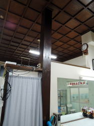 三菱重工などの大工場がある臨海工業地帯、和田岬。地下鉄海岸線とJR和田岬線の駅の少し西、笠松通り商店街を入ってすぐのところにある。 震災の被害が大きかったところだが、笠松湯は昔の造りのまま営業を続けている。 外壁は震災後に塗り直されたと思われるが、レトロな風情をいい感じで残している。屋号の書体になかなか味がある。 商店街の一角で落ち着いた景観を演出下足室から脱衣場へ進むと、ローカルムード漂う脱力空間が迎えてくれる。男女仕切りの上には派手な神棚(稲荷)が祀られ、浴室前の垂れ壁は少しモダンな感じ。 浴室に入ると、よその銭湯とはやや異質な雰囲気が漂う。 広い浴室の中央に、浅深の大きな浴槽がデーン。それだけ。気泡もジェットもなし。あとは壁際にカランが並ぶのみ。 浴室は広いし天井も高い、なのに浴槽が一つだけだから、非常にのびのびとした空間が広がっている。浴槽のへりも厚みがあり、どっしりしている。 なんとなく大陸的な感じだ。 主湯1本勝負かつてはここで、大勢の港湾・工場労働者たちが汗を流したのだろう。軍需産業から高度成長までを真っ黒になってささえてきた労働者たちが、夕方いっせいに集まって一日の疲れを癒した場所。 今は閑散とした空間の真ん中で、大きな湯船にどっぷりと浸かって目を閉じる。しみじみ・・・。 湯船の四隅はカーブしていて小判型に近い。へりには小さな長方形の青タイルがびっしりと貼られている。 タイル張りの床は、カランの手前に排水溝がない。そのかわり浴室の出入り口から2〜3メートルのところにある溝を最低地点として、床全体が奥から手前に傾斜している。 ということは奥で体を洗った人の排水が手前の人の足元を流れて行くのだが、そのへんの配慮のなさもまた土地柄を感じさせる。 奥の壁の手前1.5メートルほどのところに天井から1メートルたらずの鴨居のような垂れ壁があり、そこにアルプスの湖畔をイメージしたモザイクタイル絵がある。 垂れ壁を支える円柱とともに、この浴室の大きなアクセントになっている。 設備はなにもない。でも、大きな空間で大きな湯船にゆっくりと浸かることができる。そんな銭湯だ。(2003.9.17) ※「レトロ銭湯へようこそ関西版」に掲載されました。 ※2016年3月「レトロ銭湯探訪ツアー」が行われました。 当湯番台で販売中!(本書が買える銭湯一覧) |