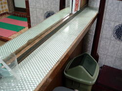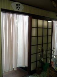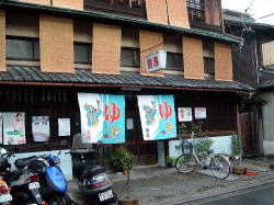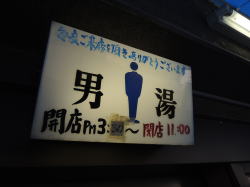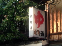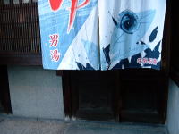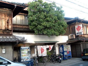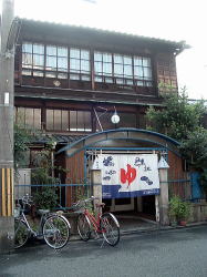 住所は長ったらしいが、ようするに京阪電車三条駅から東へ徒歩3分、三条花見小路上ル。なんかこのあたり微妙に通り名が変化しててややこしいけど、わかりにくい場所ではない。 見てのとおりの京都伝統建築。風情満点だが、側面のトタン張りが老築化を物語っとります。 ![]() 暖簾の後ろに木の引き戸、それを開けるとすぐタタキに番台がある。番台には物腰柔らかなおばあさん。 タタキの隅には木の下駄箱があるが、鍵のない箱が目立つ。まあたいていの人は脱ぎ捨てている。 ![]() (左)低い番台は大正生まれ。側面に引き出し (右)籠ごと脱衣箱に入れる京都式 脱衣場は全体的に「京都でおます〜」の空気に満ちた、骨董品的木製空間。天井がトタン張りになっているのがちょっと残念だが、大正期の建物らしいからねぇ。 番台のばあさんはやさしい声で、「これ使いなはれ」と桶を貸してくれたり、柳行李を「ふたつ使いなはれ」と気に掛けてくれたり、とても優しい。 浴室入口上部の壁に、男女ぶち抜きでモザイクタイルの平安神宮が描かれていて、これが非常に見応えがある。 流し周辺にも、屋号にちなんで柳の飛びつくカエルなど、2種類のモザイクタイル絵があって華やかだ。 職人芸どすえ浴室はカマボコ天井に大きな湯気抜き、床は細かいタイルがびっしり。 男女境壁に接する半円形の深浅主浴槽は、薄っぺらいフチにこれまた細かいタイルびっしり。京都ならではの湯船じゃのぉ。 深いほうはやや熱めの42〜43度、浅いほうはややぬるめ。 奥に岩風呂ふうの副浴槽があり、岩からチョロチョロと湯が落ちてくる仕掛けになっている。こっちもややぬるめ。 そして入口隅には、ひゃあ〜うれしい水風呂だ、しかもチベタイ! まったくこの季節にこれほど嬉しいものはおまへんえ。 温冷交互入浴を10回くらい繰り返すうちに、なんかハァハァしてきたよ。 舞妓さんがウロウロする祇園のお茶屋街のすぐ近くだが、この銭湯はもちろん「いちげんさん」OK。「昔ながらの銭湯で番台のばあさんとの心温まる語らい」を観光コースに組み込むべし。 (04.7.8) ばあさん、帰りにわざわざ外まで見送りに出てくれた |