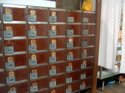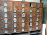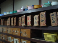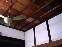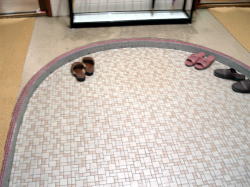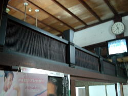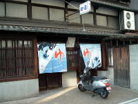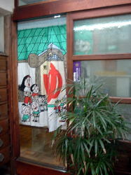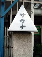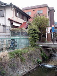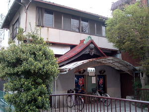 ようするに銀閣寺の近く。銀閣寺から白川通りへ降りる途中、白川沿いの道をちょっと下がってすぐ。銀閣寺道バス停から徒歩2分ほど。 まちなみの風情にぴったりの渋い面持ち。道の向かいを白川がザァザァと音を立てて流れている。 暖簾をくぐると、カーブのついたタイル張り土間の玄関。格天井と木の下駄箱がエエ味を出している。 ![]() (左)玄関土間 (右)下駄箱の鍵は上向きに錠が上がる仕組み 戸を開けると、番台には人のよさげな50歳代のおかみさんが座る。 脱衣所も格天井だが、かなりたわんでますなあ。男女隔壁上には神棚ポジションにテレビが鎮座している。 ロッカーはもちろん籠ごと入れる京都式。 浴室から飛び出すようなかたちで、増設されたらしきサウナが脱衣所に張り出している。そのかわり前栽を大部分つぶして脱衣所を広げたもよう。そこに飲み物の自販機が置かれている。 浴室はこじんまりだが、じつにうまく機能的にまとまっている。 全体的に京都的なタイルで改装されていて古さは皆無、清潔感は極めて高い。京都的なタイル、の説明は難しいが、たとえば湯船へりの緑タイルなんかは大阪や神戸では見られない。 湯船は男女隔壁にそって奥から座浴ジェット2連、浅、深、薬湯、水、と小さめながらも5槽が並ぶ。中でも薬湯はゴキゲンな気泡つきで、漢方薬の入った布袋が浮いている。極楽度高し。 湯温は42度くらい、薬湯だけややぬるめ。水風呂はびしっと冷たい。 そしてサウナは乾式、しかも無料! 5〜6人は入れる広さがあって嬉しいねえ。 洗い場は島カランも2連あって十分。水圧もバッチリ。 四角錘の天井の真ん中に、京都らしく大きな湯気抜きが開いている。 時間がなくて長湯できなかったのがつくづく残念、古い外見に似合わぬ充実の銭湯だ。また来よう。 (04.10.31) 見た目はモロ昔ながらだが |