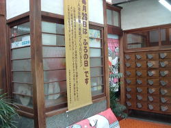 ちょっとした思い出がある。 あれは1年半ほど前。神戸の某看護イベントで講演したとき、俺の接待係としてついてくれた2年目ナースがいたくカワイコちゃんだった。 で僕が調子に乗って「僕は銭湯めぐりが趣味なんですよ〜ウヘヘヘ」と話したところ、彼女はさわやかに笑ってこうおっしゃった。 「私、京都の山科に妹がいるんですが、駅から行く途中にある銭湯へ何度かブラっと入りました。風情があっていい感じですよ」 「ほう、それは何という銭湯?」 「何だったかしら。ミササギにあるんですけど」 それ以来ずっと気になっていたが、ついにやってきました御陵湯。「御陵」と書いて「みささぎ」と読む。地下鉄御陵駅から南の路地へ5分たらず歩いたところ。 カワイコちゃんナースがブラっと寄る銭湯って、どんなんかな〜と思ったら・・・。 う、うそー! 激渋の唐破風じゃないですか! 普通は前栽がある部分に千鳥破風が並ぶ伝統バリバリの入母屋造りに黒瓦、唐破風は銅葺き。うーむ、人は見かけによらんのう。 暖簾をくぐると、正面が出っ張った下足室。古い木の下駄箱が健在の郷愁空間だが、妙に明るい。上を見ると、破風と母屋の間が少し離れていて透明の波板がはめられており、そこから日光が差し込んでいる。 ![]() (左)男湯入口 (右)中央の出っ張りと女湯側下駄箱、茶色と白のクラシカルな世界 男湯暖簾をくぐると番台におばちゃん。 おっ、けっこう広々な脱衣所はしっくい壁に格天井、関西にしちゃかなり高いぞ。 ロッカーはアルミ製だが、21個しかないため、よけい広々している感じ。 破風上の窓から日光が入って、明るいなあ。籠は残念ながらプラ籠。 浴室は改装されて古さはない。が・・・あんりゃ、出ました、椅子なし銭湯だ! 他客はタイル床にベタ座りで体を洗っている。 俺も腰をゆわす前はどっちかっつーとベタ座り派だったんだが、今はかなりキツイのぉ。なにしろ、あぐら組めんからカラン前のタイル床に正座やし。 四角錘の天井は、脱衣所の天井よりだいぶ低めのトタン波板。湯舟は男女隔壁に沿って、奥から気泡&ジェット浴槽、深、浅、と3つがほぼ同じ大きさで並び、一番手前に小さめの水風呂がある。お湯はたっぷり満々、入るとザバーっとあふれるのが嬉しいねぇ。 上がりはトマトジュース飲みつつ、ふと頭をよぎった思い。 「あの娘もベタ座りすんのかな・・・」 (05.4.15) |