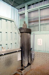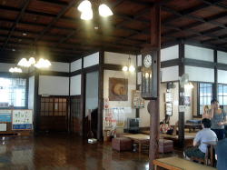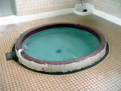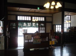 3000もの泉源があるという、泣く子ものぼせる湯都・別府。そのシンボル的な伝統の市営温泉でございます。 別府駅から南東へ徒歩数分、歓楽街を抜けてたどり着く。砂湯も名物だ。 四国の道後温泉に並ぶ惚れ惚れする正調クラシック建築だが、よく見たら男湯脱衣場の窓が開けっ放しで、おやじどもの裸が丸見えだ。 スッポンポン丸出しオッケー、来たぞ湯の町べっぷサイコー! ![]() (左)感動一筋、我こそ温泉なり (右)建物左側は砂湯部分 白人ギャルと入れ違いに暖簾をくぐると右手に受付、左手に下駄箱。そして正面に広々とロビー空間が広がる。このロビーももちろん本物のイニシエ日本建築、最近の「和風テイスト」な温泉施設なんかとは空気からして根本的に違うねぇ。 なんかね、柔らかいのよね、心に。 ![]() (左)ロビーの大広間、すばらすい (右)じじいが死のうが動いてる ロビーの左側が砂湯、右側が普通浴。このクソ暑い日に砂湯に入る人はおらんようですいている。俺も普通浴へ。 男湯の暖簾をめくって脱衣場、外から見たとおり、開いた窓から表通り筒抜けの開放感だ。見せてやろうぞわが裸体。豪快に脱いでフタなしロッカーに放り込む。他に有料コインロッカーもあるあたりが観光客の多さを物語る。 風呂場は階段を下りたところにある半地下構造。脱衣所と風呂場が一つの空間内にある造りで、基本的に別府はみなこれだ。 湯舟はそこからさらに掘り込んだ半楕円形で、へりは低い。これもヒナビた温泉スタンダードだな。どれ、伝統の湯を味わわせていただきましょうかい。 ほう、くせのない湯は無色透明無味無臭、42〜43度の適温だ。 しかしまあ、お湯がどうのこうのよりも、この空間の激渋いオーラがたまらんな。とはいえお客はほとんどが観光客風情のせいもあって、その点で微妙に落ち着かないかも。 設備としては隅に水カランがあるのみ。湯舟の湯をすくって、湯舟のヘリで体を洗う。のぼせたら水をかぶって、また浸かる。イニシエの壁や天井を見上げながら、今ここにある幸せを噛みしめる。 ずーっとやっとけと言われりゃ、やっときまっせ俺は。 上がりはロビーに飲み物やアイスの自販機あり。それにしてもこのロビーのくつろぎ感、たまらんな。帰れないったら帰れない〜。(2007.8.13) 内側から玄関方面 |