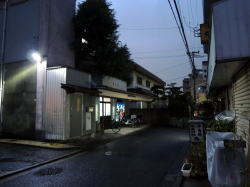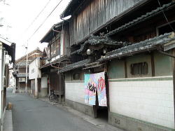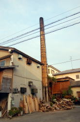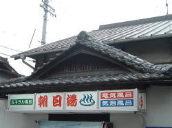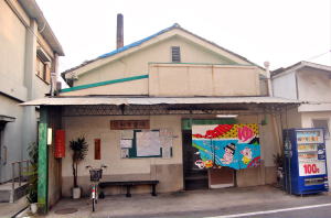 うえ〜んおかーちゃーん、渋いよぉ〜。 南海電車泉佐野駅の西側から商店街奥の旧市街地へ。5分も歩くと、なにやらもうそのへんのまちなみからして時代がかってくる。 迷路状の路地をぐにゃぐにゃ歩いていると、高速逆回転していた時計の針がついに振り切れたあたりで煙突発見。表へまわると・・・でででで出たぁ〜! ![]() ![]() (左)裏の路地で煙突発見 (右)表へまわる。チョンマゲ結ってないのが不自然なまちなみ ![]() 圧倒されるような激古建築物。心拍数がものすごいことになってくる。 暖簾をくぐると狭い下足室。靴を脱いで中に入ると、番台の横に気さくなオヤジが立っている。360円を払おうとしたら、250円だと言う。ん、250円? 「えらい安いですねぇ」 「これも最近250円に上げたばっかしやねん」 「なんでまたこないに安いん?」 「いろいろおますのや」 「商売なりたつんですか」 「なりたたへん」 いきなりの失礼な質問にも嫌そうな表情ひとつ見せないオヤジ。エクセレントな人柄だ。 脱衣所は狭い。最小クラスのプチ銭湯。番台・壁・床・ロッカーなどはチープな合板系で適当に張り直されている。 男女仕切り壁の上に、天井から大きな提灯がぶらさがっているのがおもしろい。奥に神棚もあり。 裸になってコンパクトな浴室へ。 かはーーっ、出ちゃったよー石畳、隙間コンクリ固め。 湯舟は手前に深い主浴槽、奥に浅い子ども風呂があるが、フチも座り段もすべて素朴な白御影でドドーンと重量級。 この狭さと石地獄ぶりは、岡山の柳湯あたりに並ぶものだ。わが脳内の渋銭ランキングボードで激しいドラムロールが鳴り響き、Aランクを示す赤ランプが狂ったように点滅している。 壁上部や仕切りは板張りというのも貴重だ。 カランは奥壁に2組と、手前にパイプむきだしで2組。「井戸水」と書いてある。シャワーなんかあるわけない。あるほうが不自然だろ。椅子もなし。あったらおかしいって。 鏡は当然のごとく立った位置。その下にしつらえられた木の手作り棚がいい感じ。 お湯はたっぷりざんざか、入るとザブーと溢れる。 最初43度くらいだったがどんどん沸いて、あとから来た他客がうめると、ますますザブー。ていうかもう常時ザーザー流れていく状態だ。 いや−しかし、これはぬくもるわあ。首までどっぷり浸かって、よく磨かれた石のフチからザバザバあふれる湯を見てるだけで幸せいっぱい気分になる。 出入り口横に石造りの大きめ水鉢があるのもうれしい。水をかぶっては何度も浸かる。 奥に釜場へのドアがあってオヤジが出入りしているので、フルチンのまま釜場を見せてもらう。 そこは目まいを覚えるような年代空間だった。蒸気機関車のような釜口で、周囲はレンガ造り。中でハギレ材や、オガクズを固めたブロックなどが赤々と燃えている。 「わしんとこはこの銭湯を昭和11年からやってるけど、建物はもっと昔からあった。たぶん大正時代やろ。設備はそのときのままや」 オヤジは誇らしげにそう語る。 お客はけっこう途切れずに来ていた。20代の若い客もいる。 脱衣所に流しはないから、しっかり拭いて上がるべし。 飲み物販売もなし。そうだろうとも。 脱衣所はややそっけないが、周囲のまちなみと、オヤジの人柄、値段の安さも含めて、渋銭ファンなら感激確率100%釜場見て120%。 まさに小さな大将軍だ。(2005.6.9) |