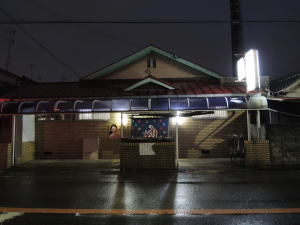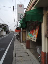 貝塚市に残る最後の1軒、すなわち孤高のラスイチ銭湯だ。 紀州街道をずっと歩いて津田川河口のちょい南、古い土壁作りの酒屋さんの隣にある。 玄関上部外壁にくっついてるレンガタイルのアーチ状の装飾がかわいらしい。唐破風を模したようにも見える。 暖簾をくぐれば石畳の小空間があり、その奥の戸を開けてやっと下足スペースという2段構えの奥まった造り。 あー、こういうのに俺はなんでかちょっとホロっとくる。ゲートをくぐるたび、何かの時空が切り替わっちゃうんだねロバート。って誰やねんロバートって。 ![]() ![]() (左)紀州街道 (右)のれん内側、玄関床の石敷と第二の扉 ![]() 戸を開けると、番台に簡素な脱衣場の古典スタイル。 脱衣箱は2段のみ。昔ながらの水色ベンチや神棚の存在が郷愁をさそう。 浴室へ進むと、田舎っぽさの漂うこぢんまりとしたレトロ空間ながら、設備は悪くない。 中央には男女壁に接して深浅主湯、奥には薬湯・ジェット・電気風呂が1列に並んでいる。手前には水風呂とスチームサウナもあるぞ。 湯船はタイル張りフチ石ノセの大阪標準だが、腰かけ段に貼られた肌色系の玉石タイルが花形などいろいろ混じりで味わい深い。 夏休みで帰省しているとおぼしき小さな女の子を、じいさんが連れてきている。銭湯に慣れない様子で、じつにほほえましい。はじめは水風呂に入れなかったが、一度入ってしまえばもう気に入ってずっと入っている。 ええのー。風呂上りには好きな飲み物を買ってもらうんだよジェニー。 とりたてて何がどうっちゅーことはない。しかし何といってもラスイチ銭湯、ずっとこのままがんばってほしいなぁ。 「銭湯のない街」が増えないよう、応援しよう!(2014.7.22) ![]() ![]() (左)湯上り、夕方の風へ (右)昔はこの街道も賑やかだったろうねロバート… |