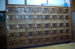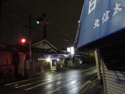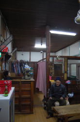 朝早く関空に行かんならんので泉佐野で宿泊。 南海泉佐野駅の東口を出て徒歩3分のホテルにチェックインし、窓から外を見てみたら・・・すぐ近くの道に「日の出湯」という看板が見えるがな。さっそくGO! 外観は殺風景な白いビル風、でも横から見たら瓦屋根の2階建。暖簾をくぐったらモックンモックンの木造建築やないの。 しかもこここここれは・・・下駄箱といい上がりがまちといい、俺の脳天クイ打ち系のケハイが満ち倒しとる。 はやる心を落ち着けて靴を脱ぎ、脱衣所へ入ると・・・! ![]() ![]() ![]() (左)看板を目印に (中)来たでぇこの下駄箱周辺! (右)番台におかみさん ![]() ![]() (左)脱衣場とご主人 (右)脱衣箱の決定版! 涙なしではいられないイニシエ・オールスターズ勢揃い。ゲージツ的な番台があまりに素晴らしい。そして脱衣箱はケヤキ一枚板に漢数字浮き彫りの最高級品。男女壁の広告入り鏡も激渋。浴室入り口の豆タイル群がまた泣かっしょる。 もはや涙腺ガバガバ状態でゼニコ払おうとしたら、入浴料250円やと! おかみさんに「安い!なじぇ!」と聞くと、「うちは古いから」とおっしゃる。 そんな濃厚レトロ空間で、若者2人が湯上りで服を着ている。さすが泉佐野、根付いてるぞ渋銭文化! 滂沱の涙は頬を伝うに任せつつ、裸になって浴室へ。 ゆるいカマボコ天井の下、中央横向きに小判型湯船が一つきりの超シンプルタイプだが・・・この湯船、タイル張りでしかも周囲に大阪名物の腰掛段がないぞ! フチには神戸西部でよく見るえんじ色の豆タイルが貼られている。 右側と奥にカランが並んでいる。カラン下には低い石段がついている。 右側のカランを使おうとしたら、浴室内を通って釜場へ行くご主人が、「こっちはぬくもってない。奥がいいよ」と教えてくださった。 熱い湯に身を沈めては、隅の水鉢から冷水をかぶる。 先客おじさん2名だが、あとからもポツリポツリと客が来る。俺より若い人もいる。 湯気と静寂に包まれた空間。なんとなく別府を思い出した。 上がってカボスドリンクをいただきながら聞くと、昭和29年、おっちゃん22歳のときに始めた銭湯で、脱衣場は木造だが浴室は鉄筋コンクリでできているという。 骨董品的な脱衣場でテレビだけが液晶の新型、このミスマッチがまた鮮烈だ。 ![]() ![]() (左)便所も激渋、言わずもがなのボットン式 (右)まぼろし遭遇時間も終わり 経営者はとても素敵なご夫婦だ。でもご高齢なだけにちょっと心配。また入りに来ますのでぜひお元気で! ほこほこになって外へ出たら、俺と入れ替わりに20歳前後の今どきギャルが自転車でやって来て、ケータイいじりながら風呂道具を持って入っていった。これが泉佐野の銭湯文化の実力なのか。 終了時刻を聞くのを忘れたけど、10時過ぎにホテルの窓から見たらもう看板の電気が消えていた。最後の常連客が帰ったら閉めるパターンかもしれないので、早めに行くほうがいいだろう。(2011.1.20) |