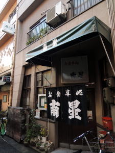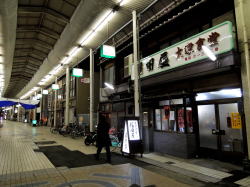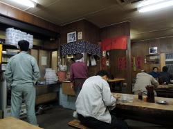 さびれかけた商店街のアーケード下に、見た瞬間に「おぉっ!」と声を上げてしまう古い大衆食堂がある。 看板、外壁、タイル、そして店頭に掲げられた「開」の招き布と「関東煮」の赤い張り紙……普通のチープな食堂とは明らかに異なる、格調高いオーラをまとっている。 ![]() (左)只者ではない (右)中央奥に関東煮ブース いくぶん厳かな心持ちでドアを押して中に入ると、けっこうな広さがある。 コンクリ打ちっぱなしの床に、分厚い木の長テーブルが4つ5つ。半分近い席が埋まっていて、みんな静かに飲み食いしている。 奥に厨房があるが、手前にも半畳ほどのミニ料理ブースがあって、店主っぽいおじさんが関東煮を煮ている。 空間全体に色濃く漂うイニシエの微粒子。ここには長年維持されてきた独特のしきたりがあり、それに則って飲み食いするのみ。ということを瞬時に理解させられる。 ![]() (左)メニューは限定的なイニシエスタイル (右)関東煮1本150円×2 まずは関東煮とビールを頼んだ。関東煮1本150円。 「1本」とはどういうことかと思うと、それは甘く煮込んだモツ串だった。関東煮はこれ1種のみ。大根・玉子・コンニャクといった馴染みの具材は一切ない。 モツ串の甘みはかなり強い。一味を多めにかけてビールをやりつつ壁メニューを観察する。 ここでも品目はかなり限られている。基本は肉と玉子だ。 それを飯に乗せた肉丼650円、肉玉丼700円。 もしくは、うどんかそばに乗せた肉うどん・そば530円、玉子うどん・そば530円、肉玉うどん・そば580円。 ![]() (左)肉玉丼700円 (右)漬物130円 あとは、めし、味噌汁、漬物、冷奴。そしてビールと酒。それだけだ。 壁に「昔ながらのお店です」と書いた赤い紙が貼られている。 この店は大正時代の創業らしい。おそらくは、その当時のメニューをそのまま守って現在に至っているのだろう。 座って、食べて、飲む。それだけで誰もが大正時代の人になる。 奇跡のタイムカプセル食堂と言うほかない。 夢見心地な体験(2015年1月) |