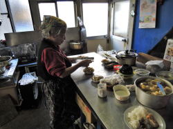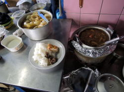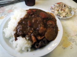 広島・平和公園南の角地にある食堂。 入るとテーブル席がいくつかあり、ご高齢のおかみさんが一人でやっている。あとで聞くと昭和13年生まれだそうだ。 ![]() (左)厨房方面 (右)三角形の敷地 ふだんはおかずケースにおかずが並ぶらしいが、金土はカレーとうどんしかないとおっしゃる。 「ほなカレー」と言うと、おかみさんはごはんテンコ盛の上に昨日の残りの玉子焼きと焼肉を乗せてから、「ちょっと来て」と俺を厨房に呼ぶ。そしてカレーの寸胴をかき回して、「好きなだけ入れて」とおっしゃる。 お言葉に甘えて、好きなだけ入れた。とはいえ俺も歳をとってそんなには食べられない。 ![]() (左)厨房に招かれた (右)カレーを自分でかけた。右上ラップ皿は焼飯 カレーはなかなかスパイシーだ。 さらに、「焼き飯作ったから」と焼き飯を一皿つけてくれた(上の右写真)。もー腹パンパン。 たくさんのメシ=サービスという、昔の人の感覚だ。 原爆の時のことや子どものことなど駄弁りながら食ってたら、 「今日はどこまで行くの? おにぎり作ったげよか?」 と、すっかり母親化してしまうおかみさんであった。 おかみさん山盛りカレーと焼飯を食って、そのうえおにぎりまで食ったら、炭水化物のとりすぎで下腹突出体型がさらに深刻化してしまう。俺は中年のオッサンなんだ。 カレー好きなだけ食って焼き飯つきで400円。おにぎりは遠慮しといたが、たぶんタダ。 「80歳になったらやめる」とおっしゃっていた。計算すると2018年には満80歳になられることになる。早めに行くほうがいいだろう。 (2016年12月) |