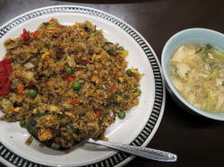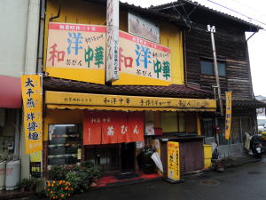 人吉の街は呑み屋は多いけど昼食の選択肢が非常に少なく、名物のうなぎ屋などたいへんな行列だ。 建物は古いが看板はやたらと派手派手しいこの店も、外で待っている4人組がいる。待つのが嫌で30分ほど無理に散策して、少しすいたのを見計らって入る。 手前にテーブル3つ4つと、奥の座敷に大きな円卓3つ。 愛想の良いバーサマが「相席でよければ一番奥にどうぞ~」と言うので、靴を脱いで一番奥の円卓へ。 60歳くらいの夫婦が先に座っている。隣の円卓には家族連れなど、土曜日のためか観光客の割合が目立つ。 壁には誰だか知らんがユーメー人かゲーノー人と店主の記念写真がいっぱい貼られている。地元の名物店のようだ。 ![]() (左)玄関から右手厨房、左にテーブル席 (右)奥の座敷の円卓、来たときはいっぱいだった メニューは和洋中揃っていてどれも500~600円台とリーズナブルだが、メインは中華で、八宝菜950円エビチリ1200円など本格派っぽい。 焼き餃子450円が名物のようなのでまずそれと、あとは汁ビーフン700円や「支那天」950円なども気になったが、あえて中華以外のドライカレー(テーブルメニューではそう書いてあるが壁メニューではカレー焼飯)、そしてビールを注文した。 先に餃子が来た。大振りで、中はニラがぎっしりの緑色。たしかにうまいわ。ドライカレーが来る前に全部食べた。 ドライカレーは香りがよく、具もいろいろで、油っ気が多いけど良い。スープつき。 ![]() (左)焼き餃子450円 (右)ドライカレー600円 愛想のよいにこやかなバーサマと、そうでもないバーサマの2人がよく動いてホールをやりくりし、店主らしき人は厨房で料理を作っているのだろうけどまったく姿は見えなかった。 もう少しすいている時に、テーブル席で他のメニューもいろいろ試したいな~。 (2016年11月) |