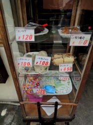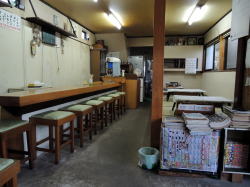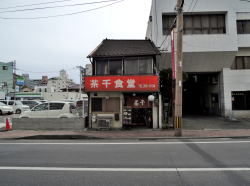 激レトロ銭湯として有名なくすり湯の近く。市電の洗馬町電停から徒歩2分、中央郵便局の向かいに古い食堂がポツーンとある。 店先にぶら下げられた白い提灯に、マジックで「いなり寿司」「おはぎ」などと書かれている。 その横のガラスケースには、「いきなりだご」がいきなり入っている。カツサンドやクッキーも置いてあるぞ……クッキー? ![]() (左)ちいさいおうち系 (右)おはぎ、団子、いなり寿司、サンドイッチ、クッキー… 正午なのに薄暗い店内には、ご高齢の小柄なおやじさんが一人。時間が完全に停止して何年も過ぎ去ったオーラが漂っている。 左右に小上がりが2卓ずつと、奥に小さなカウンター。テーブル席がないやん! お昼時なのに先客はいない。とりあえず左の小上がり席につくと電気をつけてくれた。 壁メニューを見ると、みそ汁130円、うどん250円に始まって麺類・丼物が300~600円。定食ものは650~850円。 それとは別に白板に一品ものが十数品書かれている。 テーブルなし。左端の壁際が厨房寡黙なおやじさんは、ピノキオに出てきたゼペットじいさんのような帽子をかぶっている。ゆっくりとした動作でお茶を持ってきてくれた。 めし小160円、味噌汁130円と、白板の一品から玉子焼き200円、コロッケ60円×2個を注文。 ゼペットじいさんは、きわめて緩慢な動作で料理の準備を始めた。 とそこへ、ペンキだらけの職人の若者2人が来店し、オムレツ定食と野菜炒め定食を注文。 じいさんの表情に変化はないものの、静かなパニック状態に陥りつつあることが感じられた。 じいさんは誰かに電話した。数分後、茶色いカッポウギを来た貫禄のある女性が買い物袋を3つほど下げて現れた。妻だろうか。 じいさんはゆっくりとキャベツをきざみ始めた。どうやら妻がキャベツを買ってきたらしい。 しばらくすると、初夏っぽいワンピースを来たこれまた貫禄のある中年女性が現れた。さっきの妻らしき女性と顔がクリソツだから娘だろう。 この時点でさっきのペンキ若者二人にようやくお茶が出た。 とたんに娘らしき人物が厨房を仕切り始め、じいさんの動けるスペースが約5分の1に縮小。娘は狭い厨房内を左右に立ち働き、すでに邪魔者になりつつあるゼペットじいさんをどかすための「ゴメン!」というトゲのある声が10秒に1回の割合で聞かれるようになる。 この頃からペンキ若者のうち一人が食卓に突っ伏して寝はじめた。 だが娘の登場によって調理場はめざましく回転し、わが注文の品々が順次運ばれてきた。 ![]() (左)〆て610円 (右)うまい! 60円のカチカチコロッケ×2 出てきたものは全部うまかった。玉子焼きも甘すぎず、みそ汁は豆腐までうまい。 驚いたのはコロッケ60円だ。衣がカッチカチで箸が折れそうになる。でも中身はいろいろミックスされた、非常に味わいのあるナイスなコロッケだった。こんなに中と外の変化の大きいコロッケは食ったことがない。硬いから持ち運びにもよいし、60円は魅力。店頭で売ったらブレイクするかもしれない。 他にカニクリームコロッケもあってそそられたが、忙しそうだったのでやめといた。 さてペンキ若者のほうは、まず野菜炒め定食が完成。寝ていたほうの若者は引き続き待たされたが、やっと出てきたオムレツ定食もうまそうだった。 これらの料理が完成した時点で二人の女性は即刻姿を消し、ゼペットじいさん一人が残されて、店は最初の平和な姿に戻った。 一品の「梅昆布200円」も気になったが、やめといた。 玄関の床にポリの透明衣装ケースみたいなのが置かれ、なぜか1匹の小さなフグが泳いでいた。どないすんねんこれ。 食後、表のショーケースにあったファンシーな包みのクッキー大200円を購入し、翌日の登山でおやつに食った。素朴な味でたいへんうまかった。山で食うもんはみなうまいけど。 茶千のクッキー店のたたずまいから店内のディープなムード、緩慢なゼペットじいさんと貫禄の女性陣、やたらとうまいカチカチのコロッケなど、たいへん印象に残る食堂だった。 コロッケはくせになる。ぜひまた行こう。 (2015年3月) |