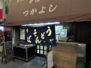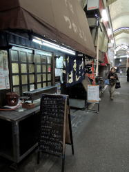 西天下茶屋駅のほうから西天商店街を南下すると、アーケードが二股に分かれる。それを右(南本通り商店街)へとるとすぐにこの店がある。 店の前に焼き鳥焼き器があり、夕方5時を過ぎるとここでオネーチャンが朝ジメ鶏を焼き始め、周囲にいい香りをまき散らす。 構えはけっこうディープだが、店の前に定食メニュー(650~800円)やおすすめが表示されていて入りやすい。 店内は カウンター6~7席と小上がり3卓。こぢんまりとしているが、この店の魅力はメニューの多さだ。 うどん、そば、ラーメン、丼物、定食ものなどの食堂定番メニューに加えて、一品ものの充実っぷりは並の居酒屋と比べてもまったくひけをとらない。 ![]() (左)定番もの、和風カレーラーメン気になる (右)本日もの、刺身もいろいろ 生ビール400円だが、17~20時は350円。 焼酎水割りも濃い目でよい。つき出しに小さな冷奴がついてくる。 周辺には銭湯が多いので、風呂上がりの一杯にちょうどよろし。 ![]() (左)ささみユッケ350円 (中)生センマイ500円 (右)表で焼いてもろた焼き鳥200円台 腰の低い50くらいの男性と、その嫁はんらしき人と、厚化粧の若いバイト女性がやっている。 表には「夜10時まで」と書かれているが、店内には「翌2:00まで」とある。なんちゅー長い営業時間や。 ずーっとやってて、安くてメニュー豊富で、客も小さな子連れの家族もいればおっさんコンビもいる、なんか嬉しくなる穴場店だ。 寄って帰らな損!(2016年3月) |