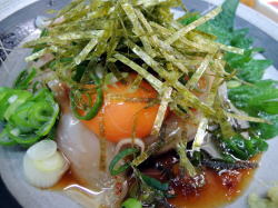新今宮駅から南側の道を挟んだ、いわゆるあいりん地区。 同じ並びには名店として知られる「焼肉の大寅」がある。同名だから関係があるのかもしれないが確認していない。 入ってすぐ右手におかずケースあり。こぢんまりとした店内は4人がけテーブルが5つあるが、一つは新聞などの置き場になっている。 厨房では男手が働き、ホールはわりと若いおねーさんが担当している。 普通、作り置きの料理は1人前ずつ皿に分けられているものだが、ここは厨房の手前の床にホルモン系の煮込み料理などが入ったズンドウがいくつかと、その上には惣菜の大皿が何枚も置かれていて、それらを分けてもらうこともできる。ディープな光景だ。 壁に貼られたメニューは定番もののほか、ホルモン類をはじめとする一品ものが充実していて、飲み屋としてもよい。どれもこれも安くてうまい。 ![]() (左)トントロ300円 (中)ニラ玉ベーコン300円 (右)ハチノス炒め400円 生ビール中は380円。ここもまた、やみつきになりそうな濃い~店だ。 ただし場所柄、慣れない女性が一人で食べに行くのは無理がある。 (2015年2月) |