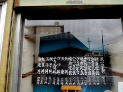 雨の中、掛川駅から10分ほど歩いた住宅地にポツンとある大衆食堂。 店内はわりと広くて、6人がけテーブル3つと、小上がり2卓。昼下がりの時間帯、無口で無表情なおやじさんが迎えてくれる。 メニューはえらく豊富だ。昔ながらの木のメニュー短冊の下に、手書きの紙短冊が洪水のように貼られていて、それらを見ているだけでも楽しくなる。でもなぜかラーメンがないのが不思議だ。 ![]() (左)ガラスに直書きメニューがナイス (右)手書き短冊がすごい 雨宿り目的で入ったが・・・焼酎でももらおか。でも焼酎はないというので瓶ビールにした。 「一品でなんかもらいましょかね」と言うと、おやじさんは控えめに、「オカズここにもいろいろあります」とおっしゃる。 見ると、冷蔵庫周辺に一皿200円で並んでいるが・・・おぉ、どの皿も数種類のおかずを組み合わせたもので、なかなかうまそうやん。 この組み合わせのセットっぷりや、「おかずにおつまみ、いかがですか」などの張り紙のフレンドリーさが、おやじさんの寡黙な印象とミスマッチでほほえましい。 「パプリカとエリンギとベーコンのバター炒め」を選択。バター不足のご時世だからもしかしてマーガリンかとも思ったが、食べたらちゃんとバター炒めだった。 「ネギの肉巻きブロッコリー添え」もうまし。どっちも200円は安いなぁ。 ホッとするひととき帰りがけ、台所におかみさんらしき女性が見えた。フレンドリーな張り紙はこのお方によるものかもしれない。 ビール中瓶600円とでちょうど1000円。ふんだんなメニューが再訪を誘う、意外なヒット食堂だ。 (2015年4月) |
