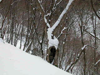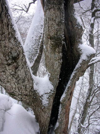 いろんな仲間と一緒です 苔(こけ)類や地衣(ちい)類が着生する 日本のブナの森は 東アジア特有のモンスーン気候の 湿気のおかげなのだそうです |
