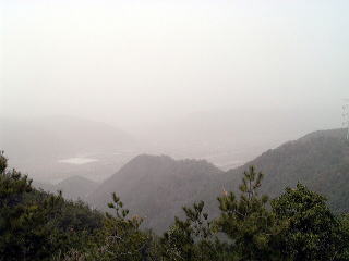 ひどい黄砂だ。空気が濁って、山の姿が見えない。