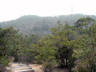谷に沿って10分ほど登ると石畳は終わり、やがてポンと尾根に出る。黄砂のうえに蒸し暑い。早くも汗びっしょりだ。ユニクロのエアテックパンツ(1990円)の季節ももう終わりだな。
