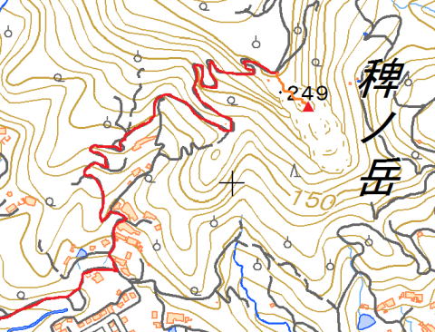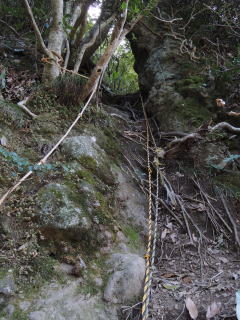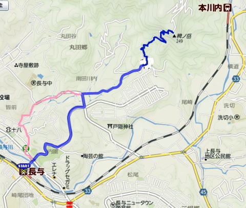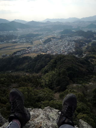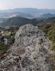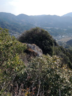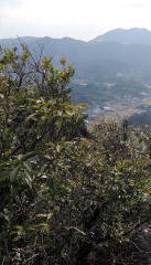 正月早々、長崎で下痢をした。 ビール飲んで寝るときに浴衣をはだけて、うっかりお腹がヒエてしもたんかな…。 移動予定を変更して一日ユルユル市内観光に切り替えたが、夜にうっかりまたビールを飲んでしもて再びあかん。 翌朝もゲリラ活動が収まらないので、飲まず食わずで消化器官を休ませつつ、冷えた体を活性化させるために小さな山に登ることにした。 長崎から諫早方面への鈍行に乗ったら、左側に気になるトンガリが見えてくるのよね〜。丸田岳(333m)の南東尾根から3本の岩頭が突き出している。 ヒエの岳、というらしい。お腹のヒエた俺にぴったりではないか。 ![]() (左)このあたり (右)列車の窓から 今回は地図も何もないので、ガラケーでヤフー地図を見ながらテキトーだ。 長与駅で降りたら正面の丘の上に大規模な遊園地みたいなエリアがある。それを上って下って、目的の山に向かって谷沿いの道路を進む。 ![]() 青線を歩いた。ピンク線は帰路 遊園地を越えて左へ下ると見えてきた歩くほどにターゲットがずんずん近づいてくる。でもなんせ下痢腹かかえて飲まず食わずの病体だから、ジジイの散歩級にゆっくりゆっくり歩く。 やがて「丸田岳」の標識が現れて左折する。そこからは急斜面にへばりついた民家とミカン畑の間をグネグネに登る無理やりな簡易舗装路となる。 このあたりで、「慎重にゲリラ活動を遂行するゲ・リバラ」というフレーズが頭に浮かんで、ひとり笑いが止まらなくなる。 急斜面のミカン畑と稗ノ岳![]() 上の地形図の赤線はすべてミカン畑のために舗装された急傾斜の道だ。 稗ノ岳は3つの岩峰から成っているが、そのうち北西端にあるいちばん大きな岩峰の根元まで舗装路が続いている。急傾斜の舗装路って、なぜか精神的にしんどいのよね。 そして稜線に乗ったところから最後のわずかなオレンジ線だけが地道、すなわち岩頭へのアタックルートだ。 稜線まで舗装路が続く稜線に乗ると、目の前に稗ノ岳の岩峰がそびえ、その根元に比恵ノ岳神社がある。この岩峰そのものがご神体なのだろう。 ![]() 比恵ノ岳神社。社はなく、岩の窪みに小さな石の祠がある 舗装路はそのまま稜線を乗り越してゆく。ここまで駅からヨチヨチ歩いて1時間弱だった。 祠の左わきに、岩峰へ登るためのトラロープが数本下がっているのが見える。 俺は鳥居の陰にリュックを置いて軍手を装着し、ポケットにカステラを1切れ忍ばせて、岩峰へのゲリラ活動に着手した。 ![]() (左)はじめは垂直に近い (右)頂上だ〜 途中の粗相もなく、ゲリラ活動はものの5分ほどでそのミッションを完了した。 山頂からは南方180度ほどの展望が広がる。足元がストンと切れ落ちているぶん、なかなかの絶景だ。 ![]() ![]() ![]() 長与の町が見渡せる 隣の岩峰も見えているが登路はなさげここでようやく水分補給、そして一切れのカステラ……この日最初の食べ物、感涙! 下り道で下らないことを祈る! 下痢腹でも登れる山であることを証明したしばし山頂でぼんやり休憩してから岩峰を下り、登ってきたぐねぐね舗装路を下った。本来ならもっと歩きたいところだが、今日の目的は下痢腹治療なので無理は禁物だ。 帰りは遊園地を通らずに川沿いを下った。往路もこっちのほうがラクだったかも。 長与駅で列車待ちの間、駅の反対側にあるリンガーハットでチャンポンを食ったが、ヒエの岳の神通力により消化器官の機能が復活したようで、カステラもチャンポンも収まるべきところへめでたく収まった。 あとで調べたら比恵ノ岳神社は「難聴」にご利益があるとのこと。軟便は関係なかったか。 (2014.1.7登) |