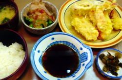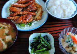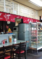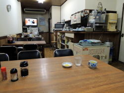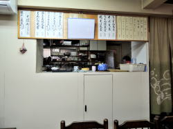 王子公園駅の西口から徒歩30秒、信号を南へ渡るだけの大衆食堂。 中に入ると、奥に長い空間。わりとこぎれいでシンプルな内装で、6人がけテーブルが3つか4つ。混んでるときは相席前提やな。 スキンヘッドのおやじさんと長身のおかみさんが迎えてくれる。 おかずケースには煮物・焼き物・フライもの・八宝菜みたいなんが入っている。 壁メニューは麺類・丼物が400~600円台のごく一般的な値段。 ![]() (左)静かな時間帯はじつに静か (右)おかずケースにトンカツも入っている おかずケースから焼サバ取ってチンしてもろて、めし小、味噌汁100円いっとこ。これで500円。 ワンコインの夕餉とくにナニがナニっちゅうこともないが、ごく普通の食事を安心して食える、駅前の便利食堂だ。 (2015.7月) |