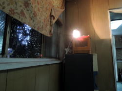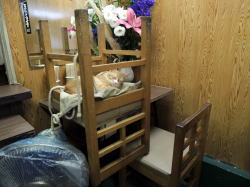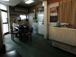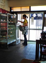 舞子の高台は駅もないのに忽然と商業地が現れたりする不思議なところ。その道路沿いにポツンと古い食堂がある。 看板は肝心の屋号がとれてしもてるし、残る「食堂」の堂の字も傾いたまんま。 店内も予想通りの天然まんま系。だがここには独特のオーラが漂っている。 ![]() (左)2部屋をつなげたような間取り (右)緑の床にテーブルいくつか 薄暗く幻想的な雰囲気だ。そして緑の床が深い森を思わせる。 天井の蛍光灯は壊れたカバーがアルミホイルで代替補修され、そのアバウトさが見た目大変なことになっている。だがそれが結果的に間接照明効果をもたらし、さらに補助的に灯されたライトが店内のムードをより盛り上げている。 むろん意図されたものではないだろう。 ![]() (左)天井の蛍光灯、いったい何があったのか (右)死角の闇を照らす補助ライト 緑の床にはテーブルがいくつか置かれている。手前にひとつ、奥に二つか三つ。手前のテーブルには先客のおばさんが座っているので、奥の窓際席に座る。 窓の外は竹が生い茂っていて、その木漏れ日がさらに幻想に拍車をかける。涼しい風が吹き込んで心地よい。 そしてこの店の主のおばあさんがニッコリと迎えてくれる。 もはやグリム童話の世界である。 壁メニューを見ると、うどん・そば・丼物が200~400円。いちばん高い親子丼や肉丼が400円だ。ビール大瓶500円を除くすべてのメニューが400円以下とは! 台所の手前に、おかずケースがある。そこから玉子焼きを選んでチンしてもらい、めし小(80円!)と味噌汁(100円)をもらう。めしは大120、中100、小80円。過去最安値かもしれない。 この日の同行者は玉子とじうどん350円を注文。 ![]() (左)これで300円! (右)玉子とじうどん350円 おばあさんの作る料理はまさに家庭料理、いい意味で普通の味だ。 めしは小80円でも十分な量があった。味噌汁100円には豆腐や揚げやワカメ玉ねぎ、そして天かすが入って具だくさん。 料理を作り終えたおばあさんは、手前のテーブル席に座り込み、先客のおばさんと俗世間の話に夢中になっていた。おばあさんは客のおばさん以上の勢いでしゃべり続け、話が全然終わらない。 食べ終えてお勘定をしてもらうと、全部で650円だった。ということは玉子焼き120円の計算になる。 衝撃的な安さに打ちのめされながら、いろんな意味でキツネにつままれたような気分で店を出る、おとぎの国の物語であった。 (2015年5月) |