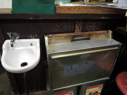 阪神電車の住吉駅から線路の南側を御影方面へ歩くと、5分ほどで高架下に見えてくる。 看板やテントのサビ色がディープなオーラを醸し出している。たぶんレールと車輪がこすれ合うときの鉄粉が付着したものだろう。でも紺地の暖簾は新しくてきちんと洗濯されている。 ![]() (左)阪神電車の高架下の角地だよ~ (右)テレビのニュースを見ながら ときわ湯へ行く時いつも閉まってるのでやってないんかなと思ってたら、早朝から昼過ぎまでの店だった。 店内はテーブル6席のみのこぢんまりサイズ。外観のわりに清潔感があるけど、照明はやや暗め。明るくて感じのいいおばちゃんが二人で切り盛りしている。 入ったところにおかずケースがあり、壁に各種麺類・丼・定食の短冊メニューが貼られている。めし小120円、中150円、大180円、汁80円、うどん200円……安っ! 朝9時前、夜勤明けのガテン系および近所の常連おやじが4組(5人)。そのうち4人が朝からビールを飲んでいる。ガテンの中年はすでにできあがっていて、バイトの学生にデカイ声で野球の話を繰り返している。 おかずケースから塩さば200円を選んでチンしてもろて、めし小120円と豚汁150円、合計470円。 よき朝食であった店のおばちゃんは仕事が一段落したら、常連客の向かいに座って世間話。もう一人のおばちゃんは空いてる席で自分のメシを食い始める。家庭の延長系の、小さくてアットホームな食堂だ。 (2015.1.31) |