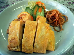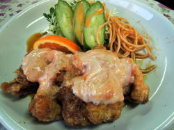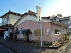 宮崎駅の南で線路をくぐって駅裏側、徒歩10分たらず。倉庫っぽくも見えるディープな面持ちの食堂だ。 むむ、ドアが開きにくい…。創業昭和46年だって。 ![]() (左)わりと広々スペースにテーブル5つ (右)陽光が間接的にほんのり差し込む北側の席 昭和中期のまま時計の針が止まった空間に、脱力フレーバーが漂っている。 おばあちゃんとその娘らしき人が料理を作っていて、おやじはこれから出前に出かけるところだった。 ビールは缶ビールのみ。とりあえずそれを飲みつつ壁メニューを見ると、麺類・丼物・洋食がほぼ400~600円台でそろう。定食全部600円とは安いなあ。 チキン南蛮定食も600円。延岡に来たらこれを食わなアカンらしいが、ビールにメシはいらんので単品で注文、たぶん500円。 下にスパゲティが隠れており、チキンにはなにやらドロドロしたソースがかかっている。フレンチドレッシングにケチャップを混ぜたような・・・でもまあ悪くない。 玉子焼きも注文したら、味付けを聞いてくれる。甘・普通・辛(塩味のみ)の3通りあるという。普通を頼んだけど、けっこう甘めだった。 ![]() (左)チキン南蛮 (右)玉子焼き400円 窓のすだれ越しに南国のソテツを眺めながら、チキン南蛮でビールをチビチビ。 あぁ、宮崎まで来たんやなぁ。 ![]() (左)窓からのソテツ (右)手洗いもキュート 古いけど、店のおばちゃんたちもええ感じやし、昼下がりの中途半端な時間帯ということもあって、ハンパないリラックス感に満たされる。 何がどうっちゅーこともないけど、俺こういう食堂、好きやわ~。 (2015年3月) |